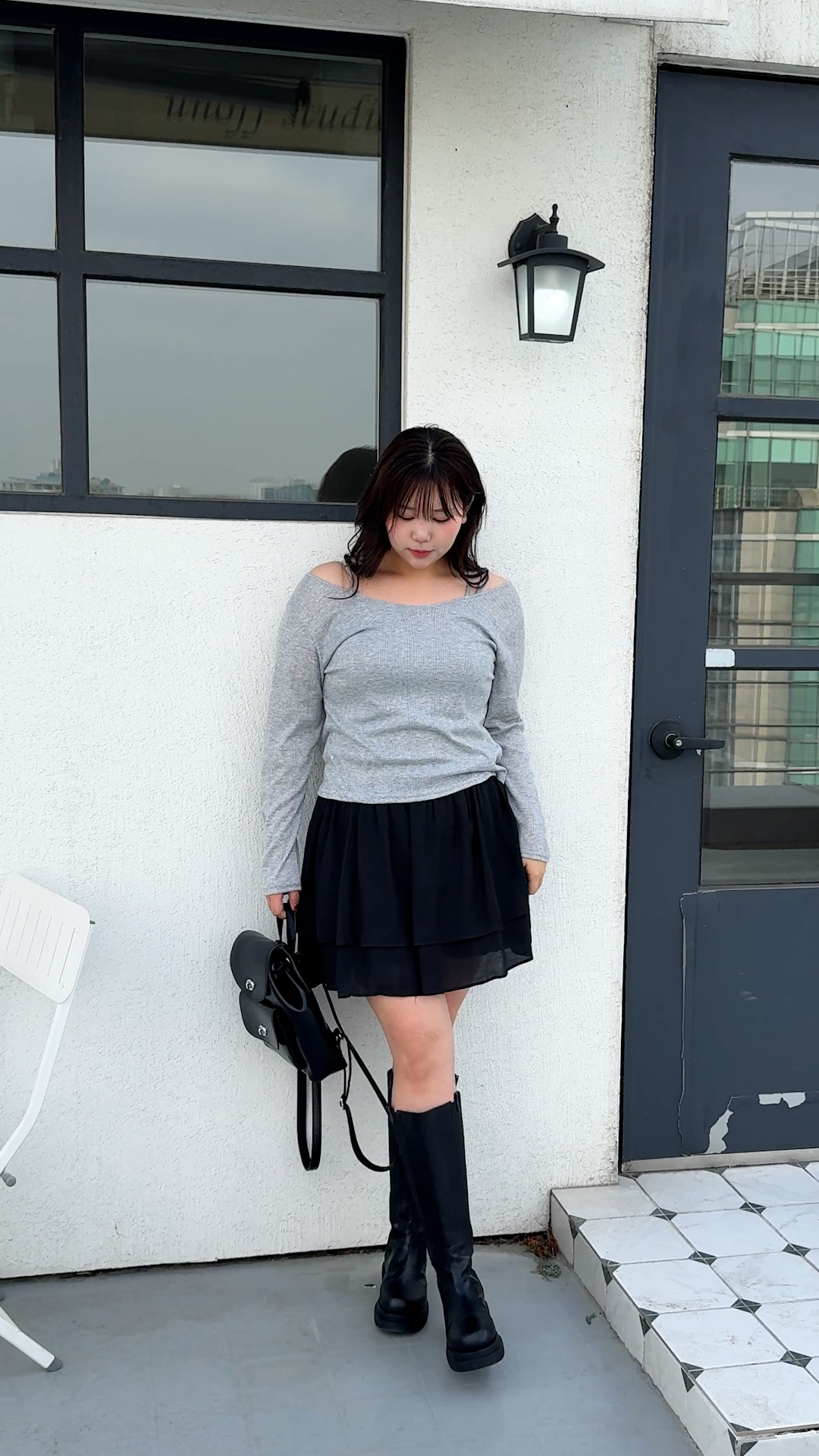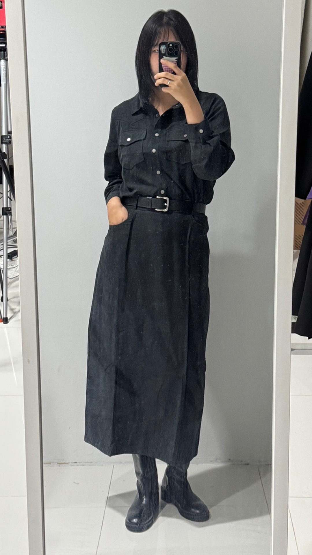 [EVELLET]멜트닝 포켓 셔츠 롱스커트SET