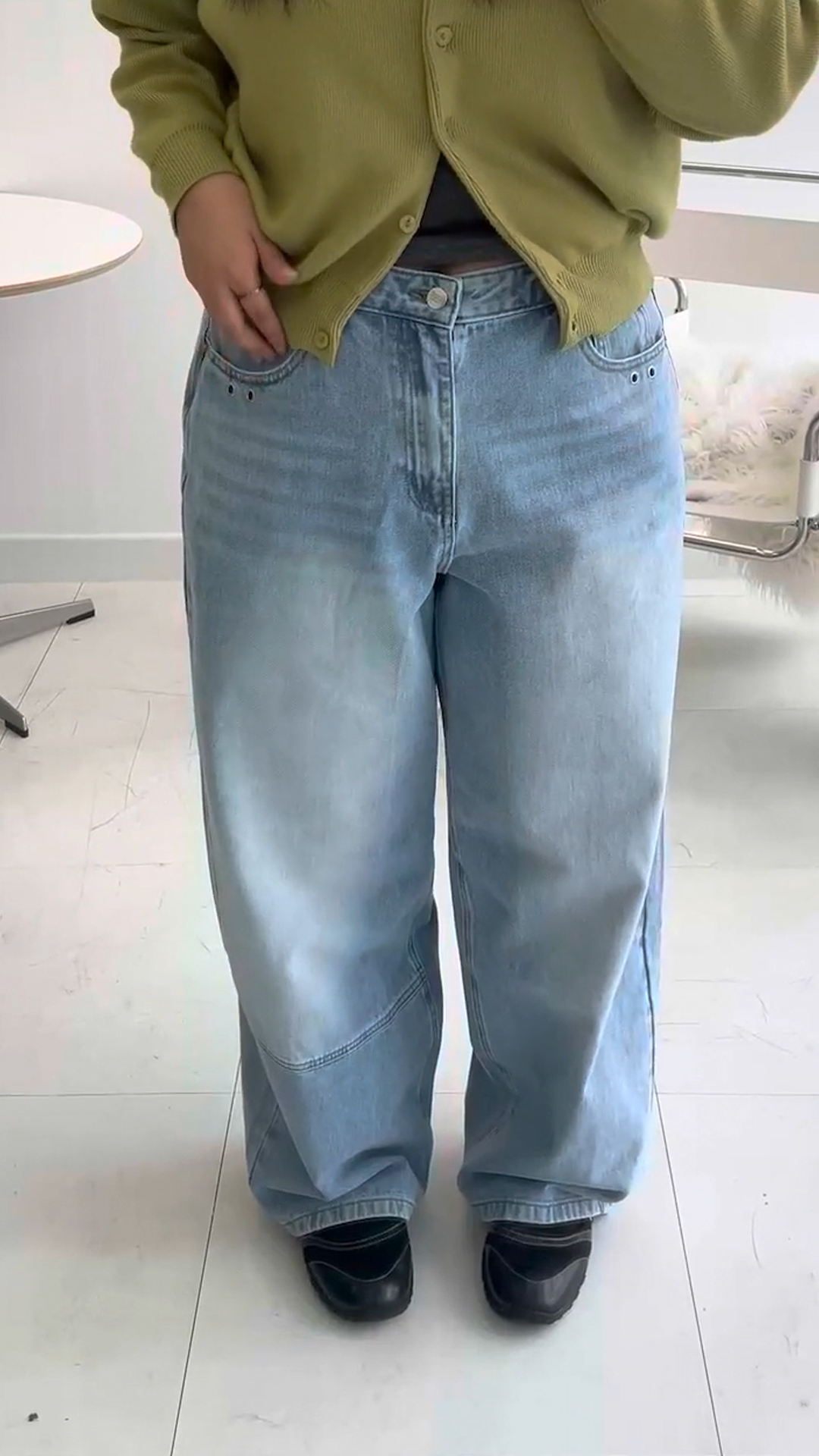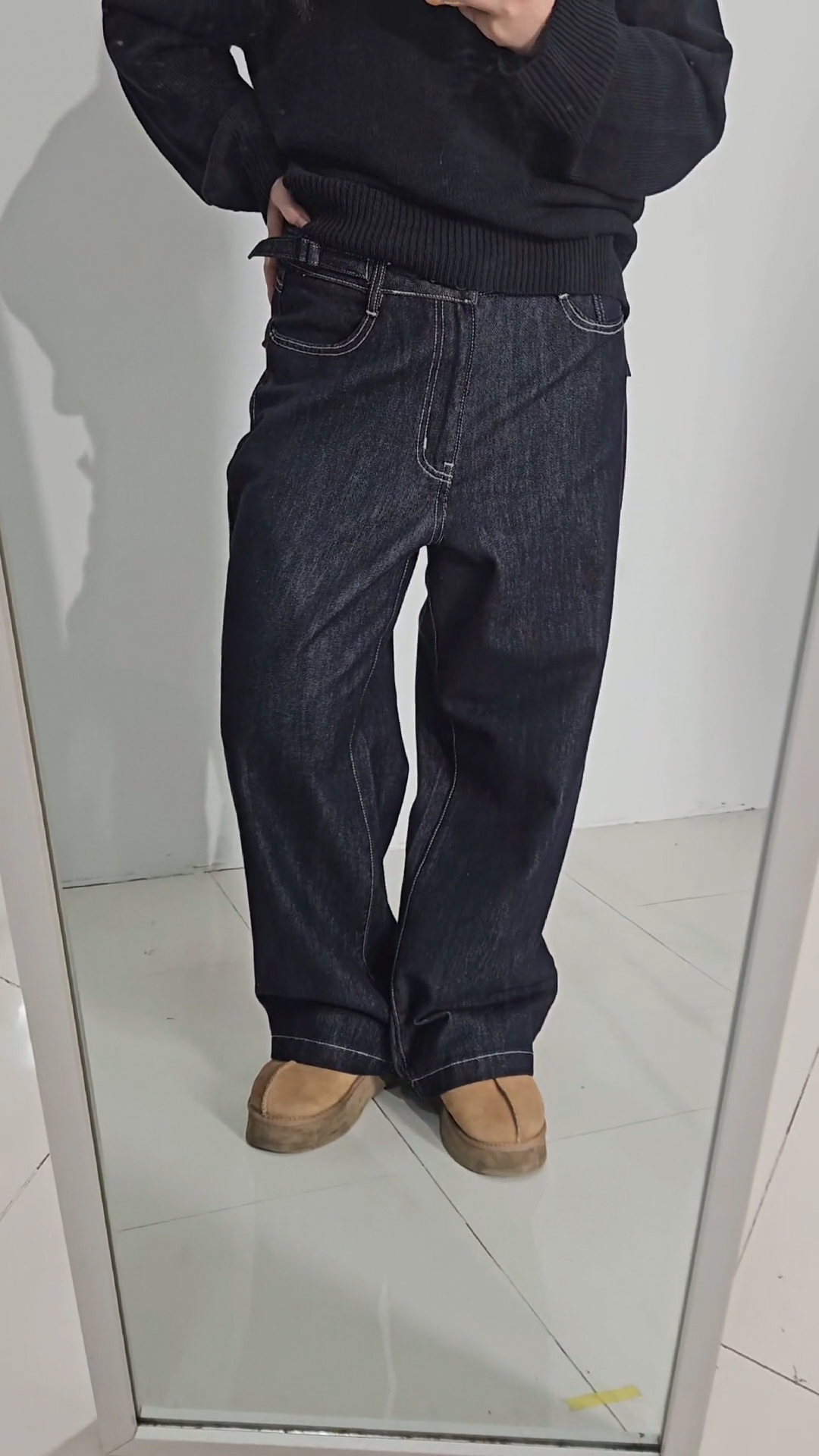 [일상팬츠]프비엔 기모 워싱 와이드 데님 팬츠