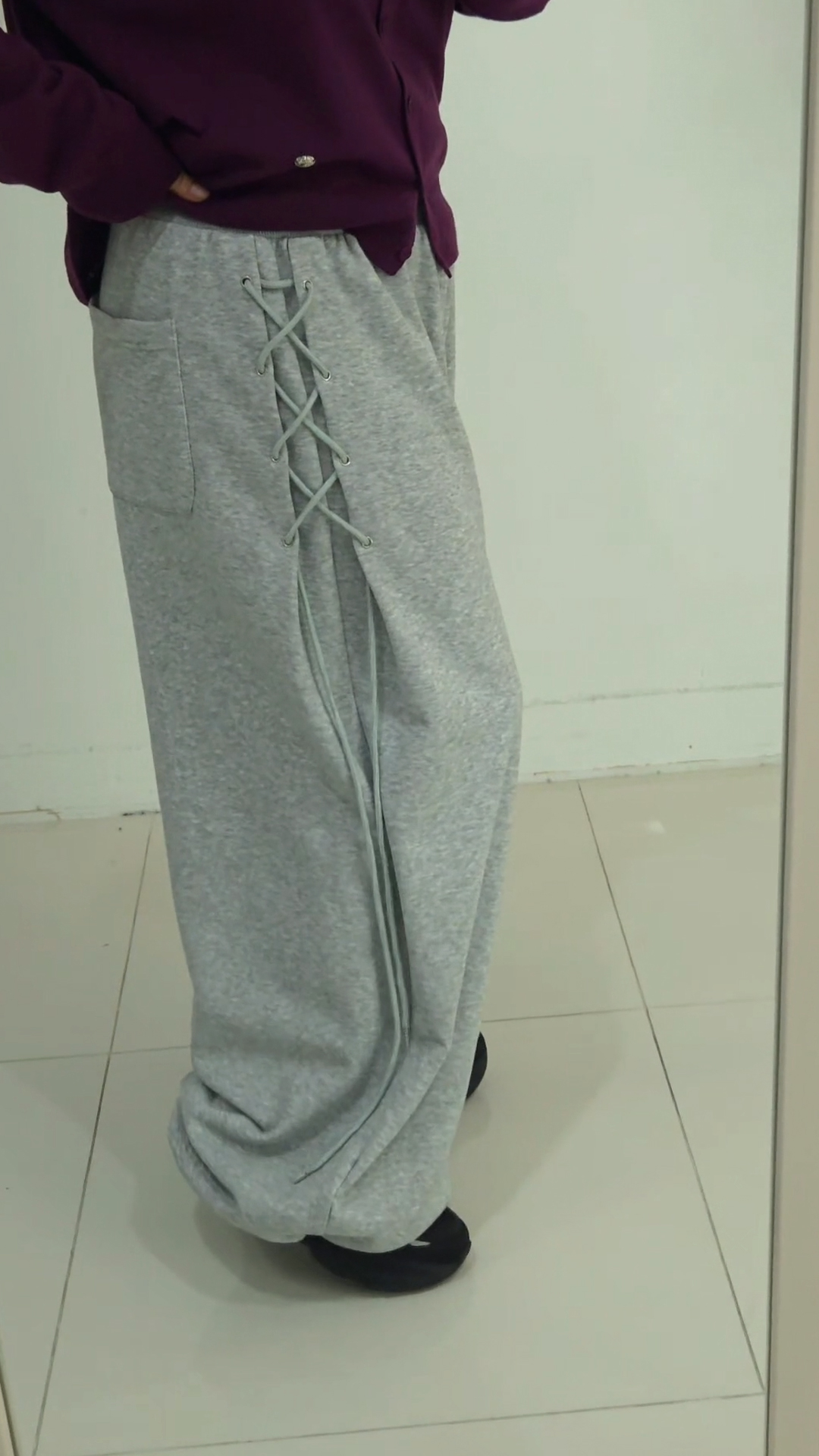 뷰온즈 스트링 와이드 롱 밴딩팬츠