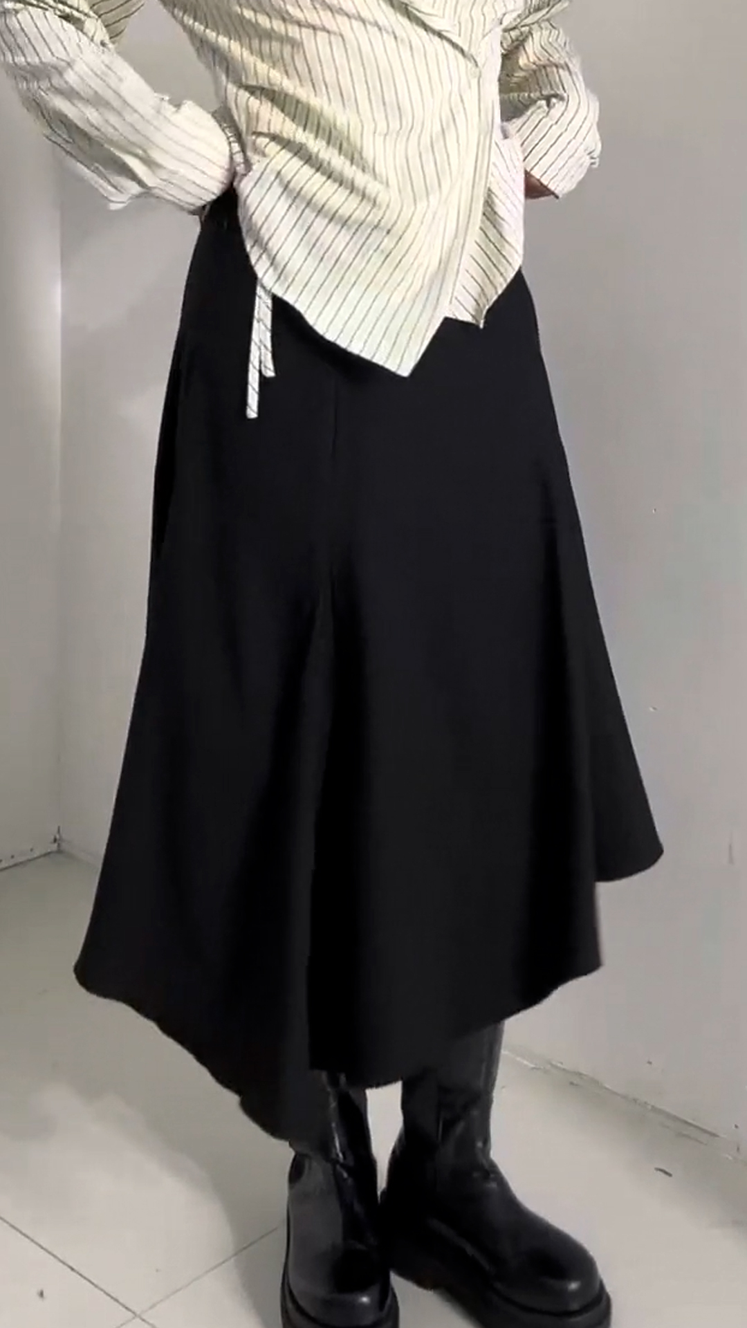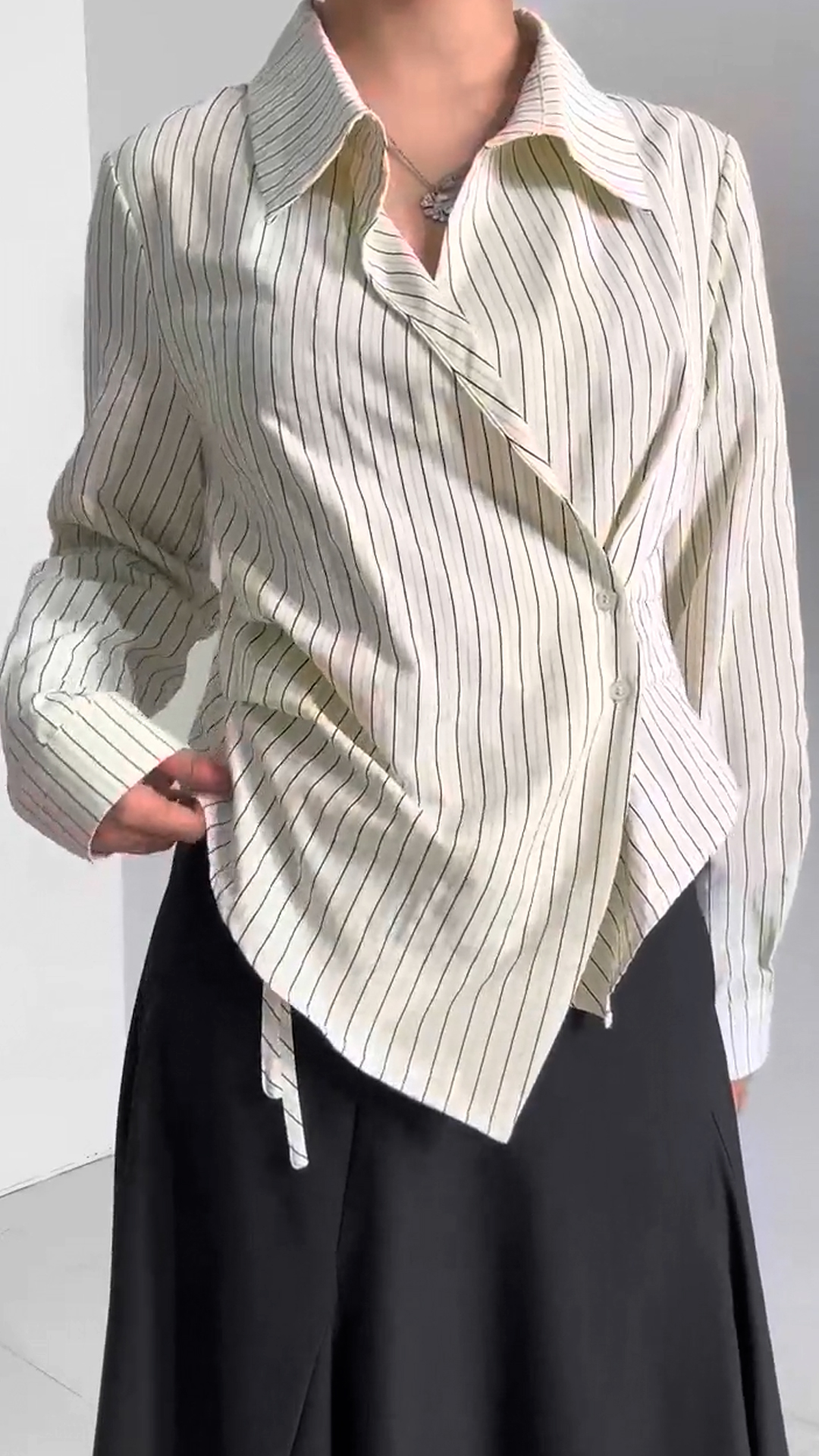 [EVELLET]플리에 언발란스 드레이프 롱스커트