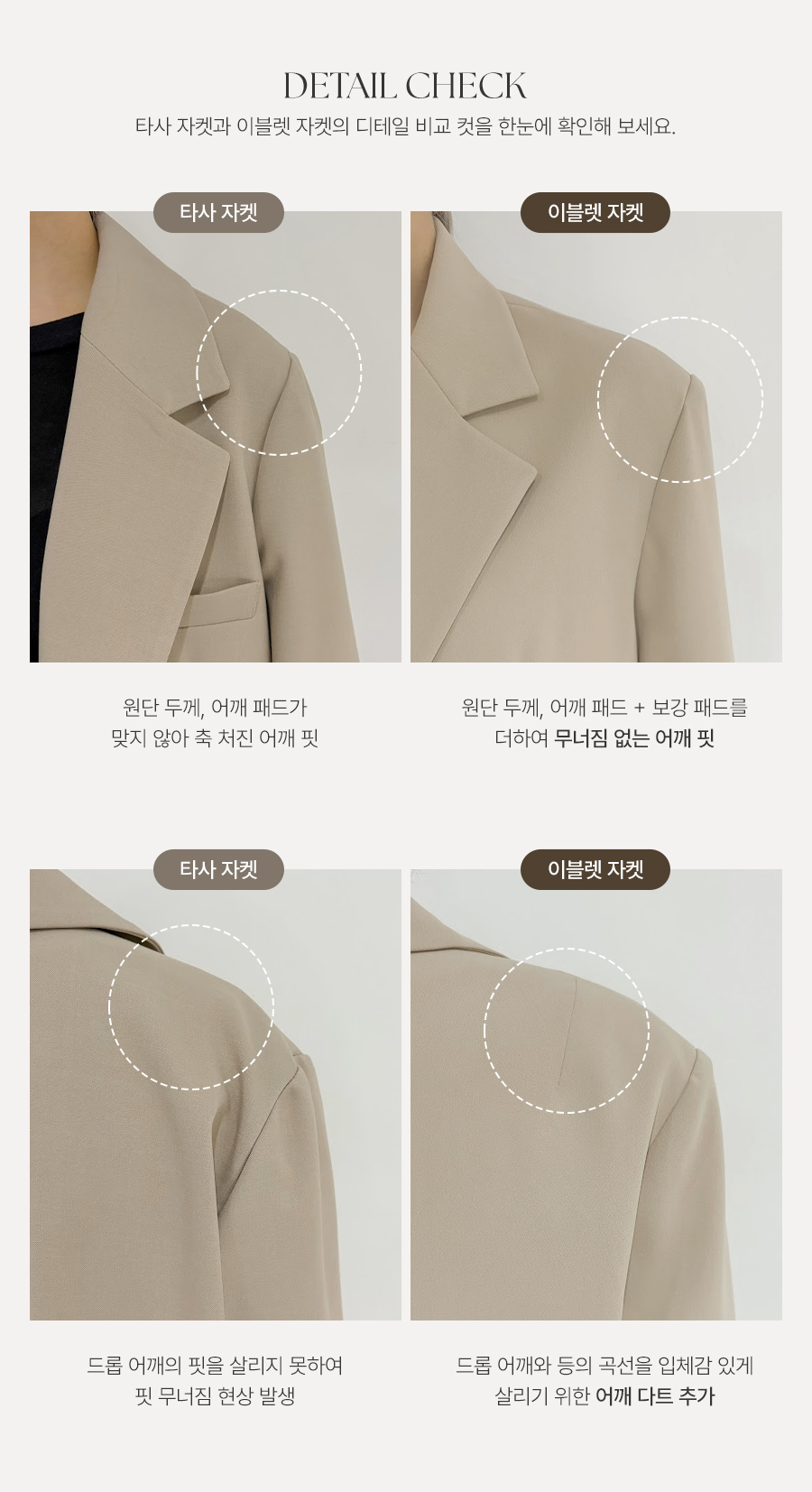 클래식한 테일러드 카라 디테일로