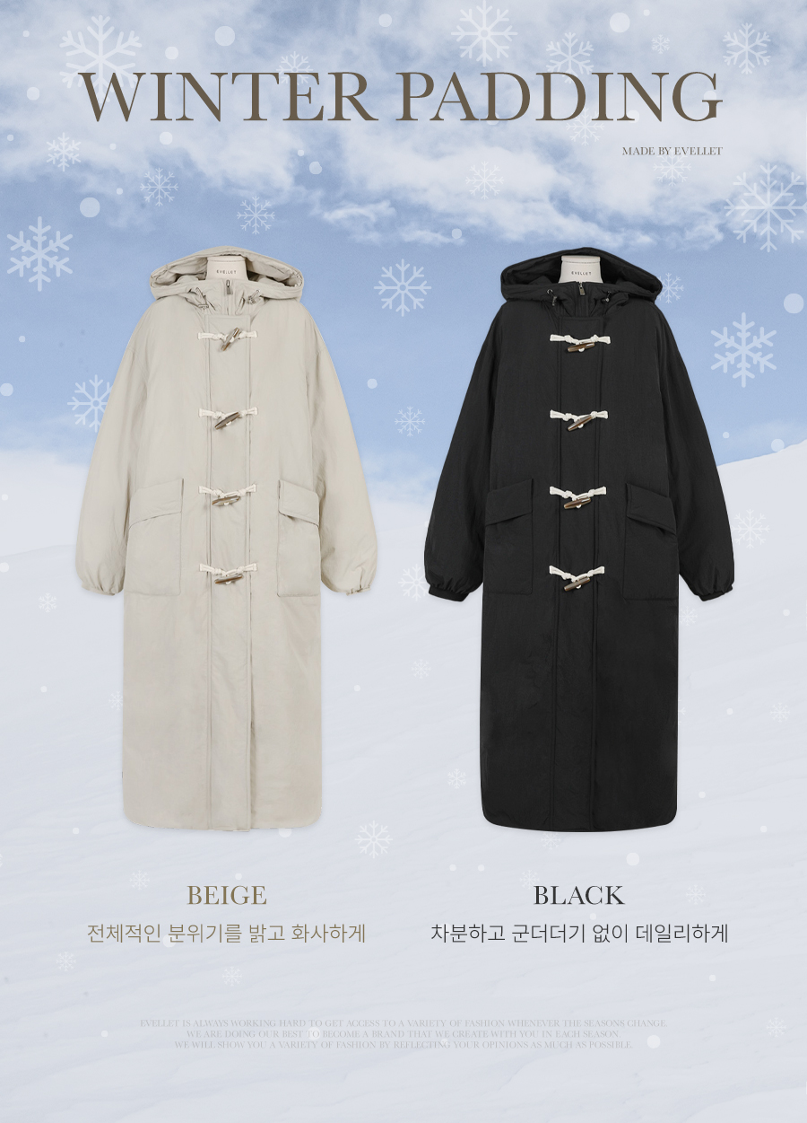 귀여운 요소가 눈에 띄는 롱 패딩을 제작했어요.