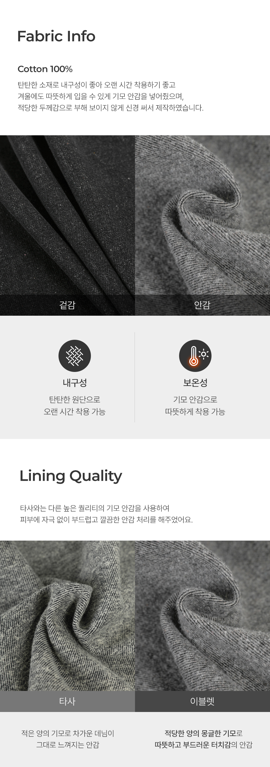 대량 생산 특성상 마감 처리가 미흡할 수 있습니다. (잘라내도 무방한 실밥, 초크 자국,제단 면의 원단 조각 등)
