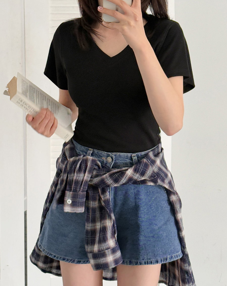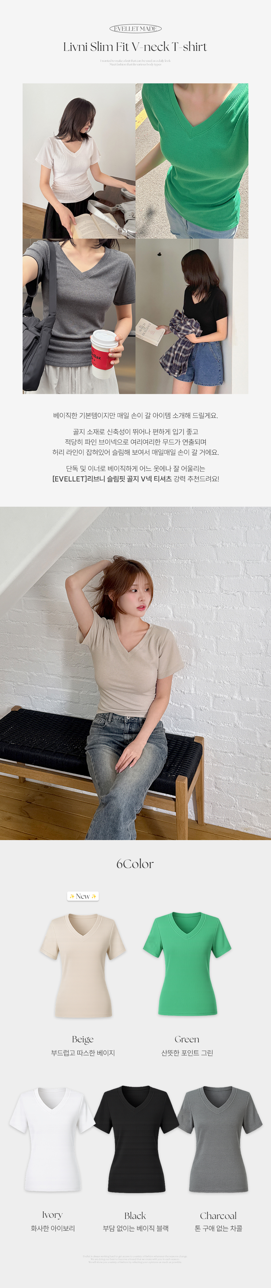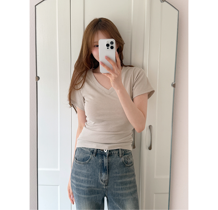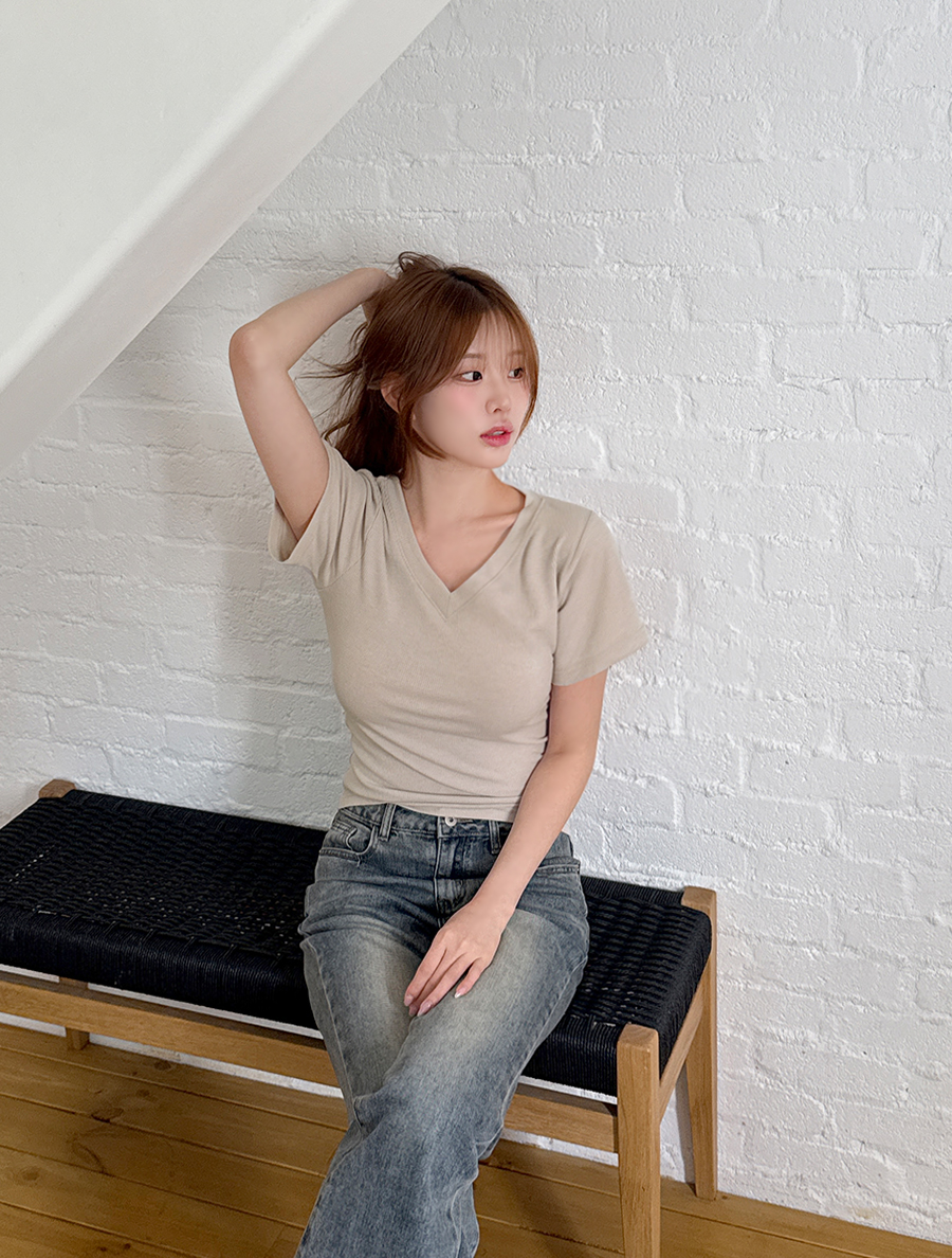 적당히 파인 브이넥 라인으로