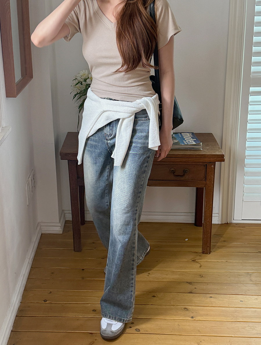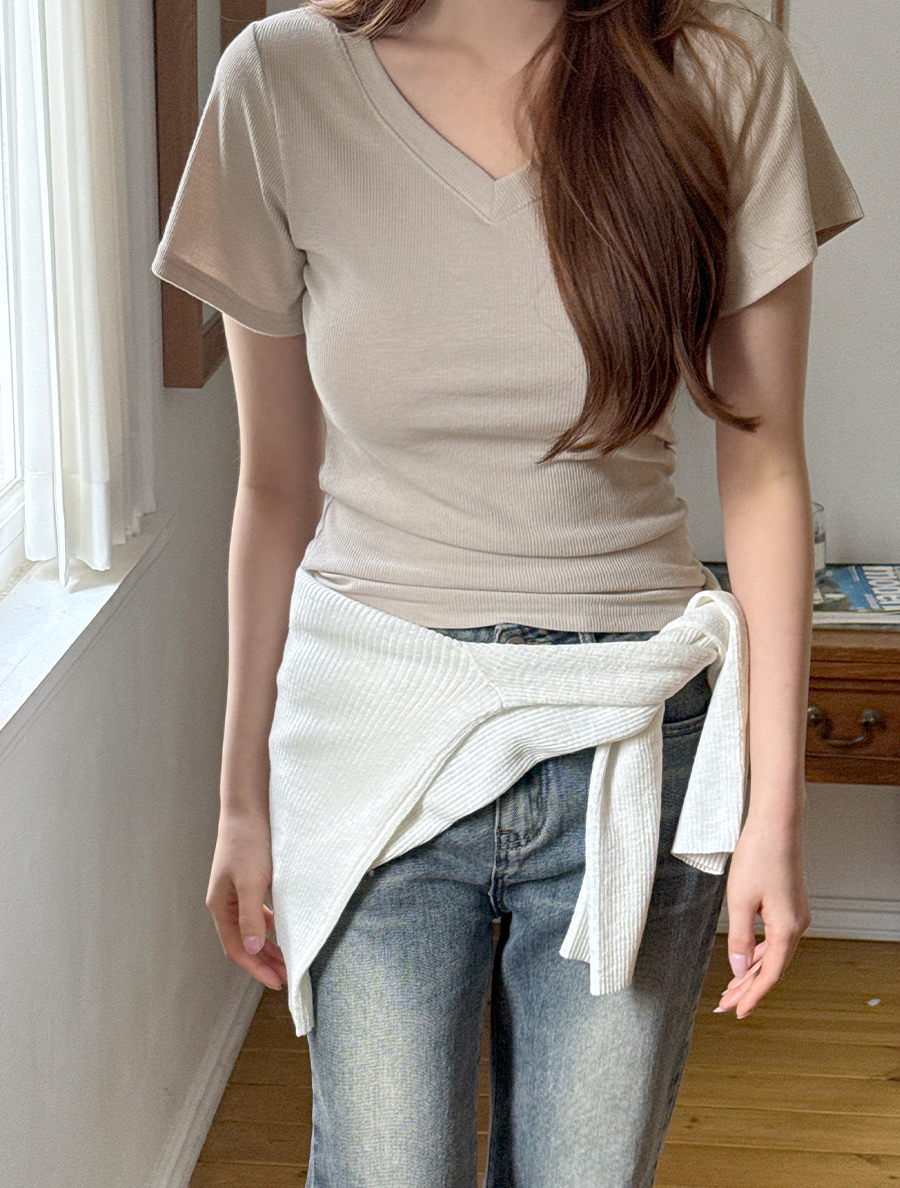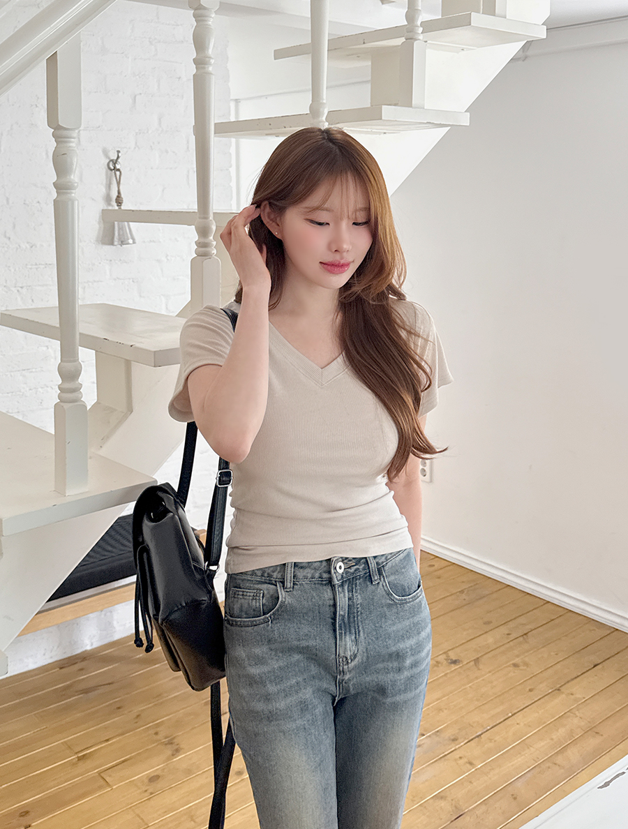적당히 파인 브이넥 라인으로
