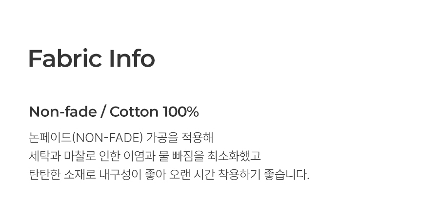 소재 특성상 물 빠짐이 있을 수 있으며 2~3회 세탁 시 물 빠짐이 현저히 줄어듭니다.