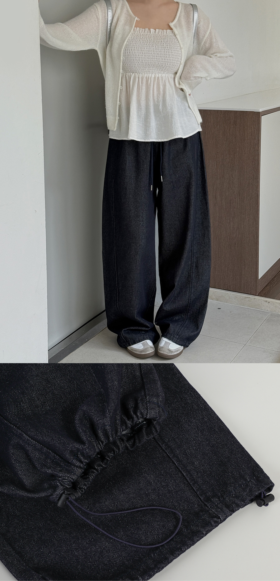 밑단에 스트링 디테일을 더해