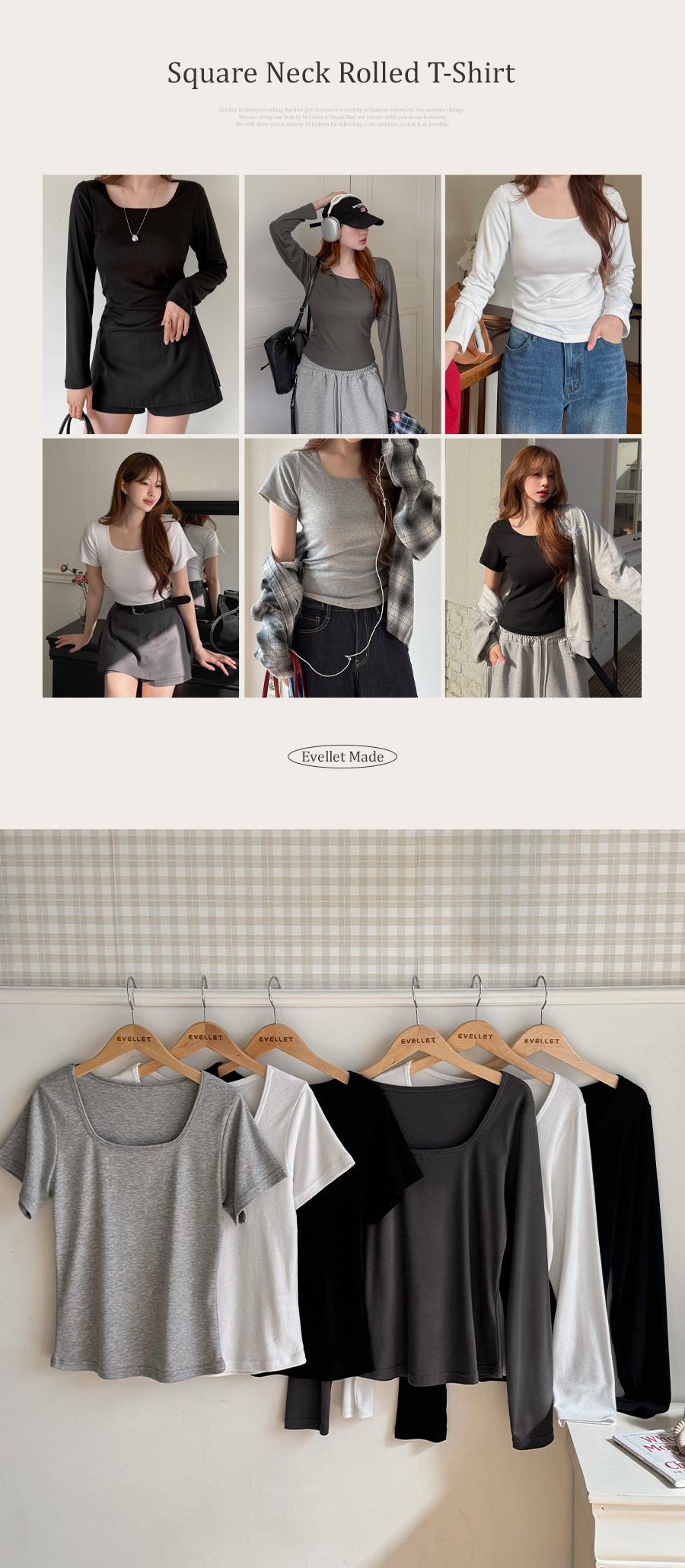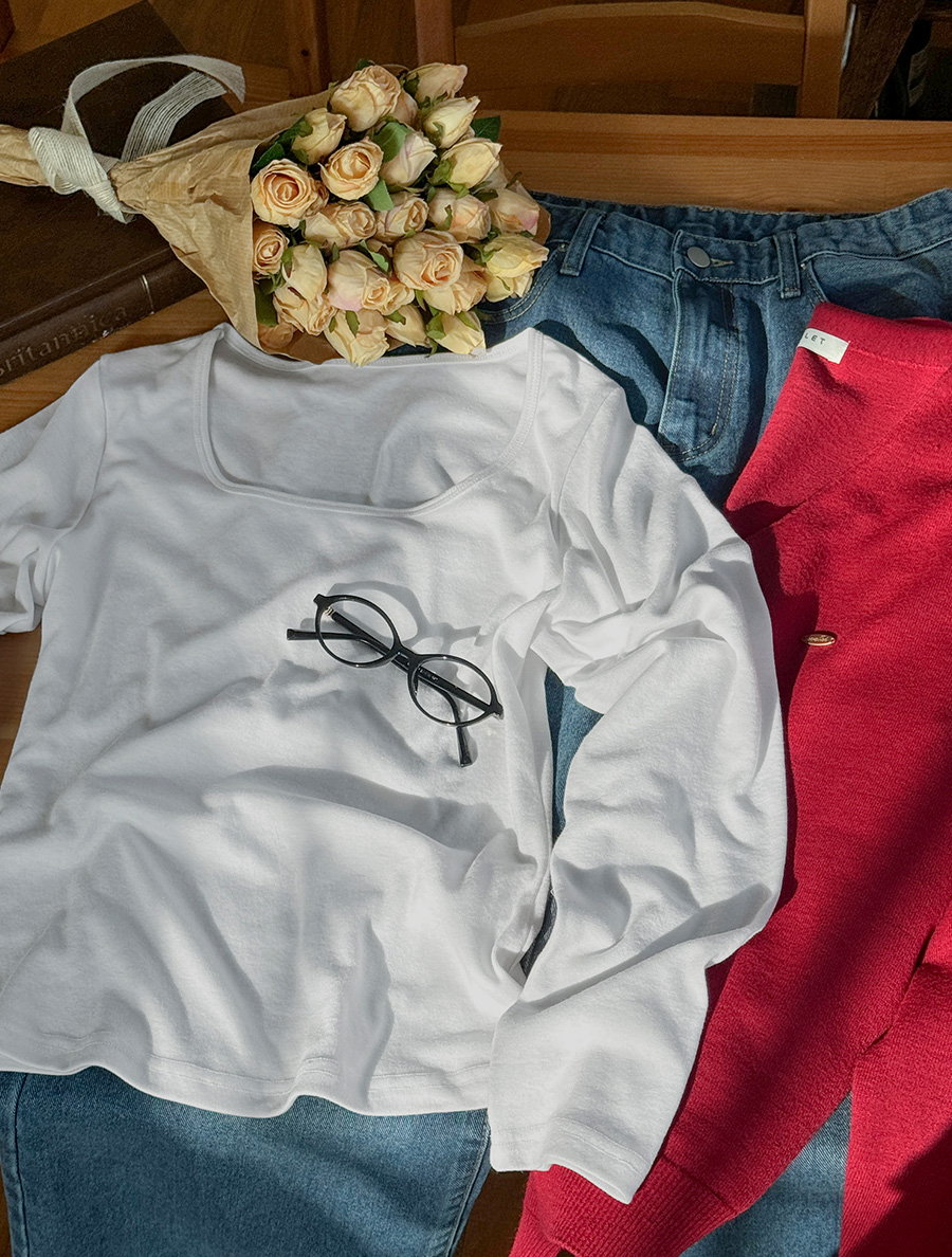 스퀘어넥 굴림 티셔츠를 소개할게요!