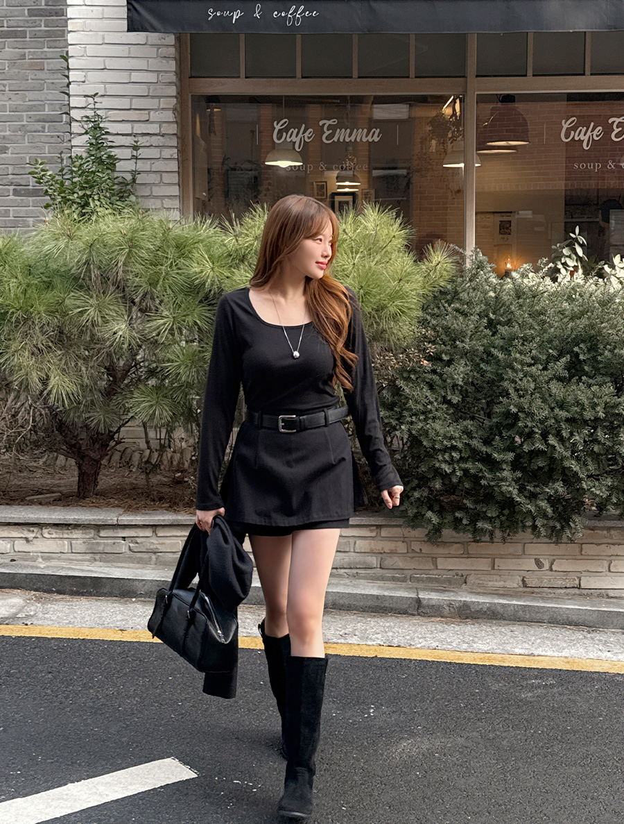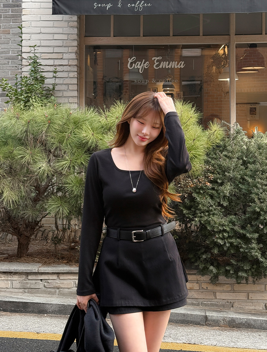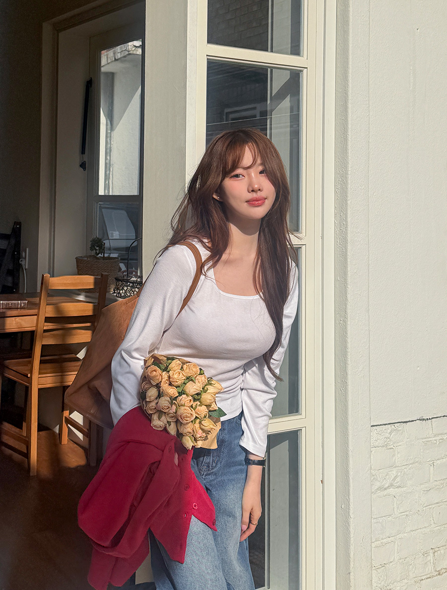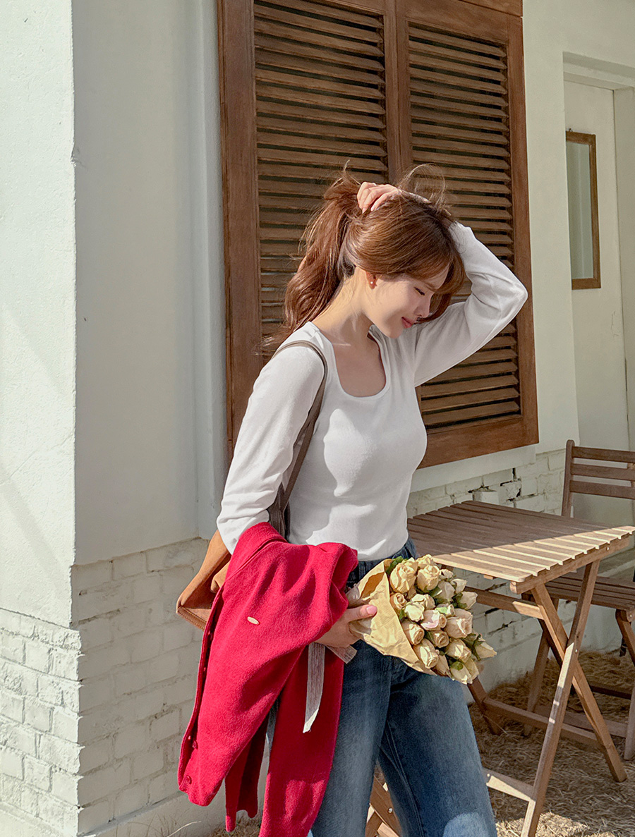 적당한 파임의 스퀘어넥으로 답답함 없이