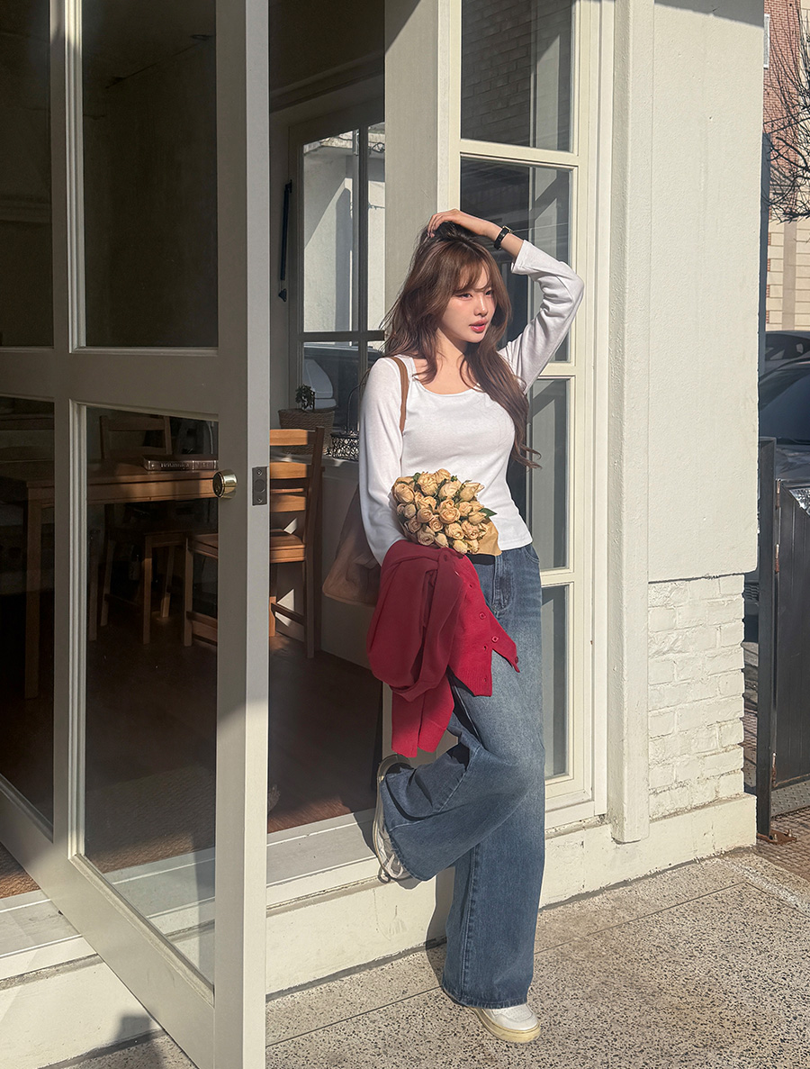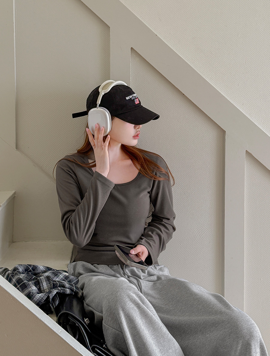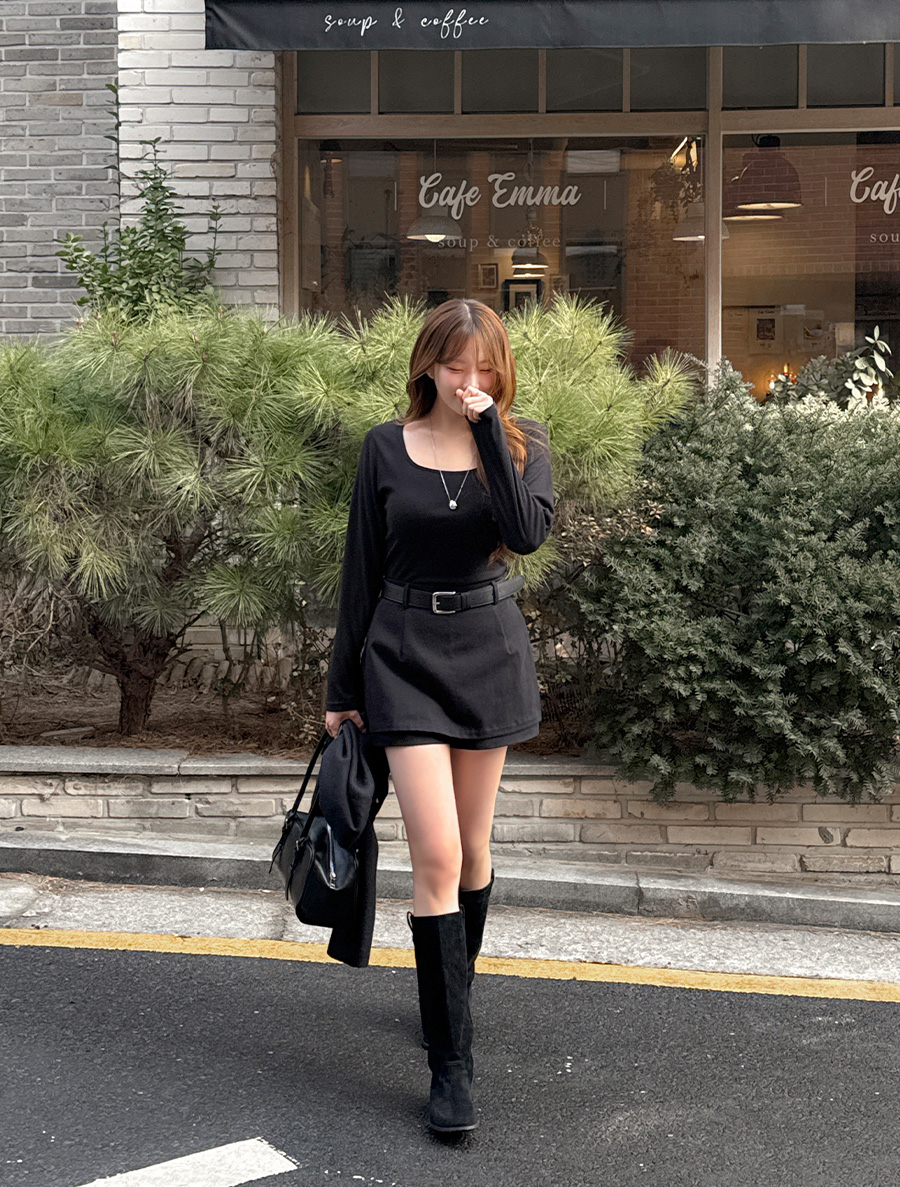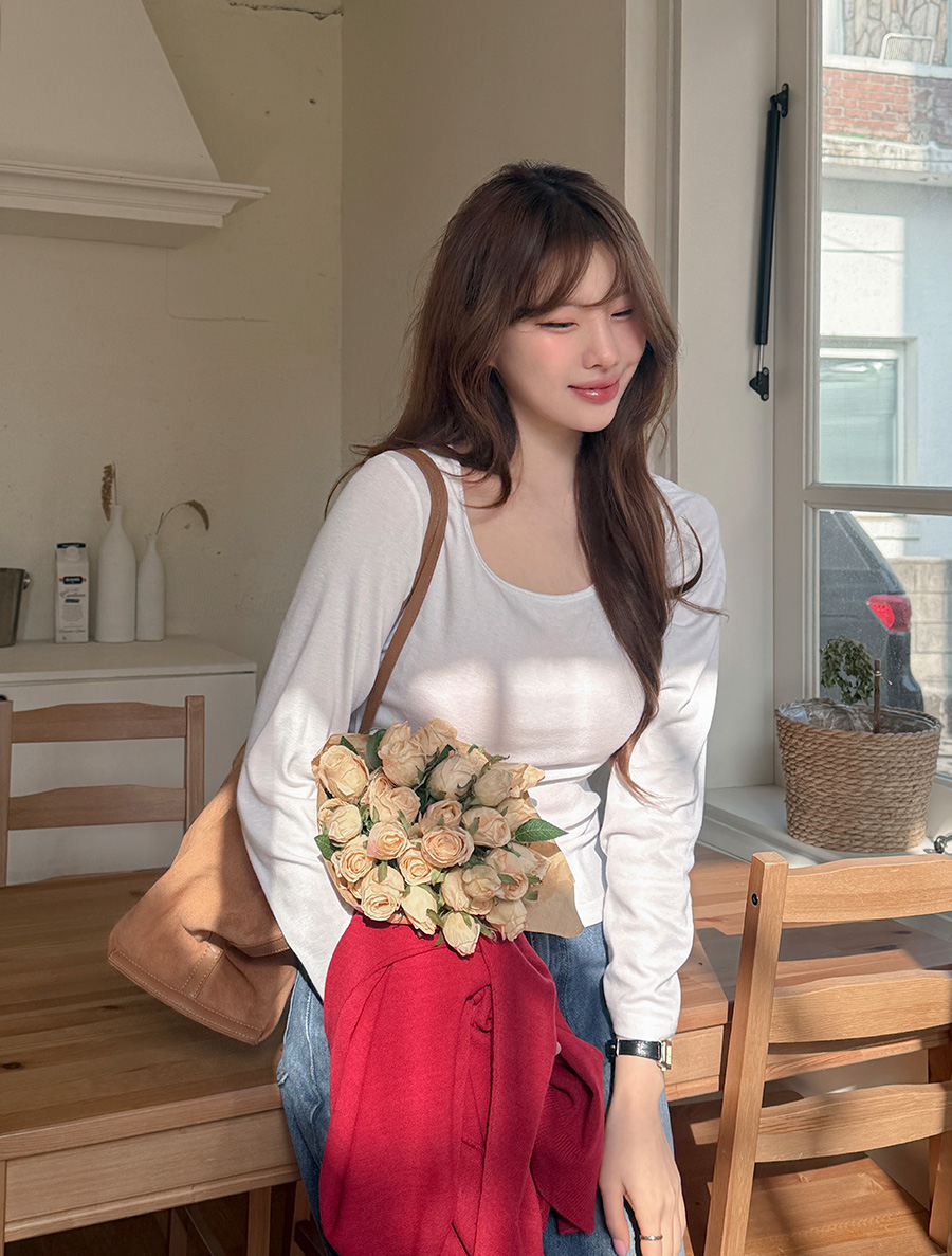 적당한 파임의 스퀘어넥으로 답답함 없이