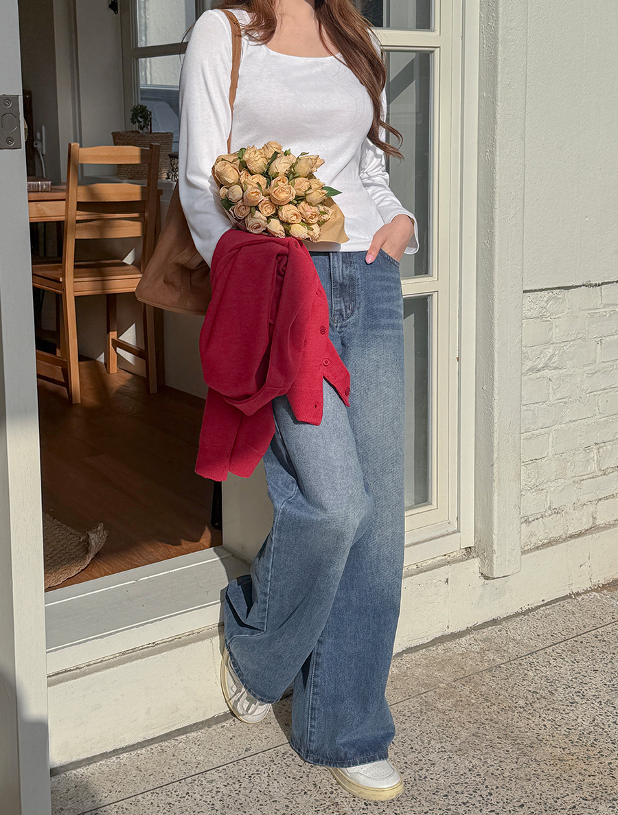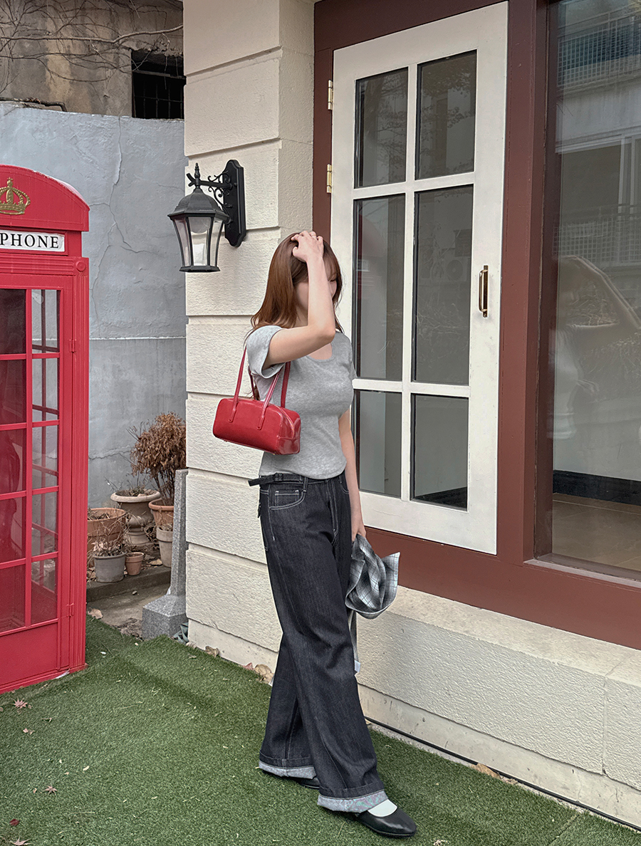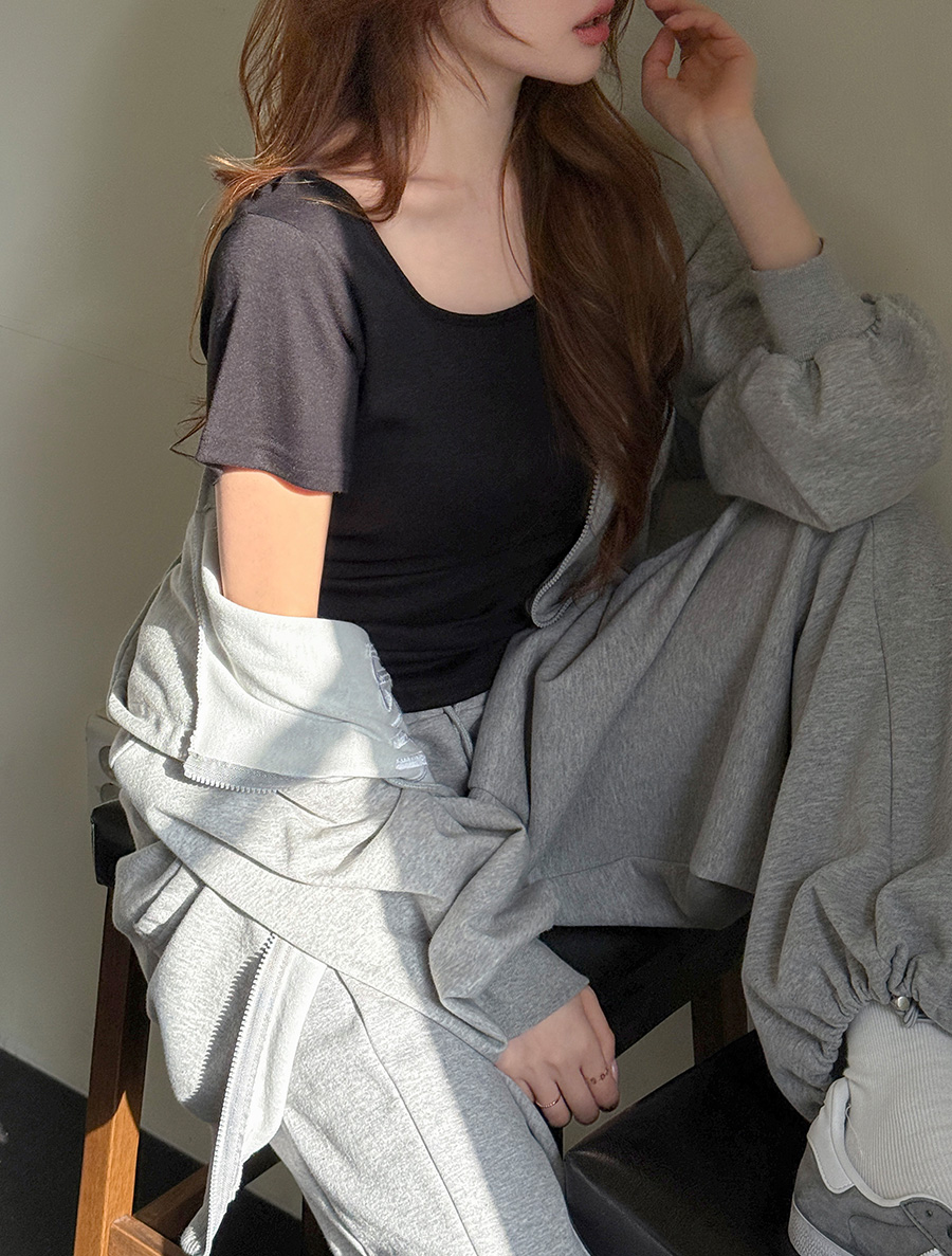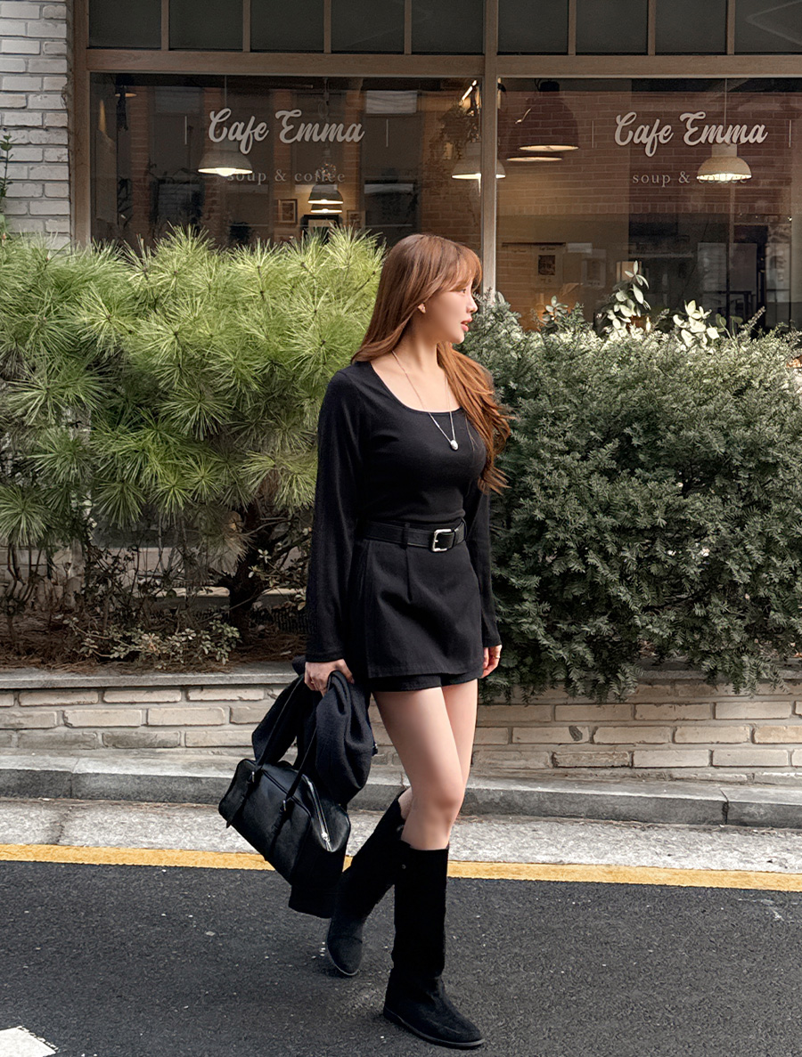 적당한 파임의 스퀘어넥으로 답답함 없이