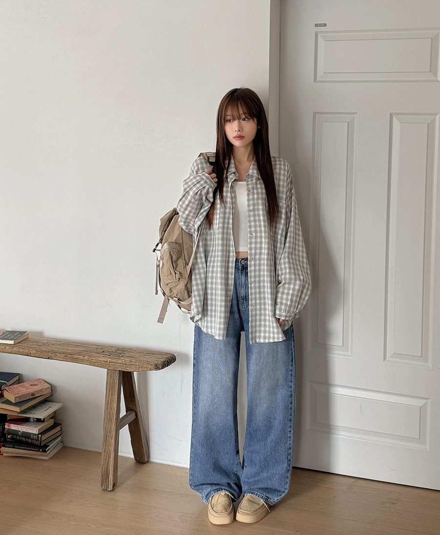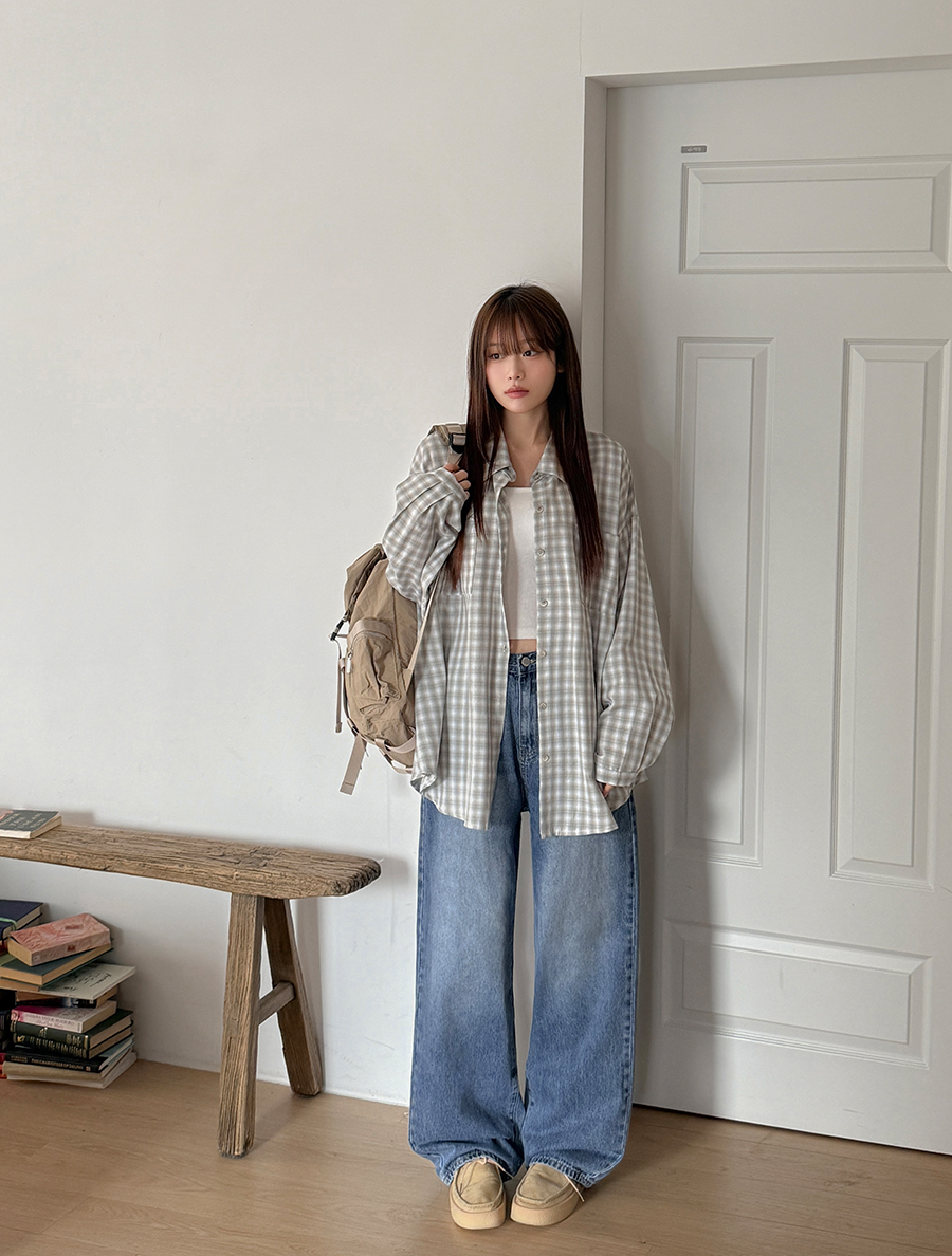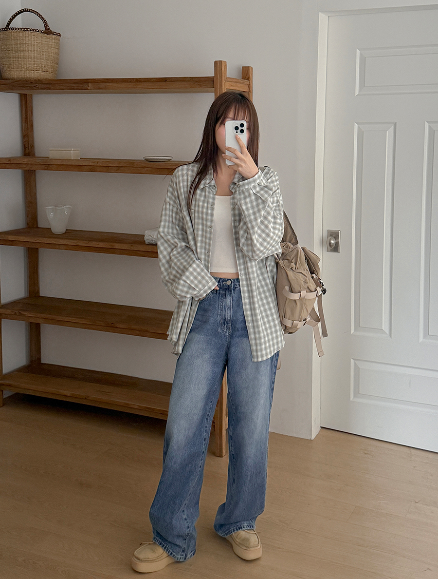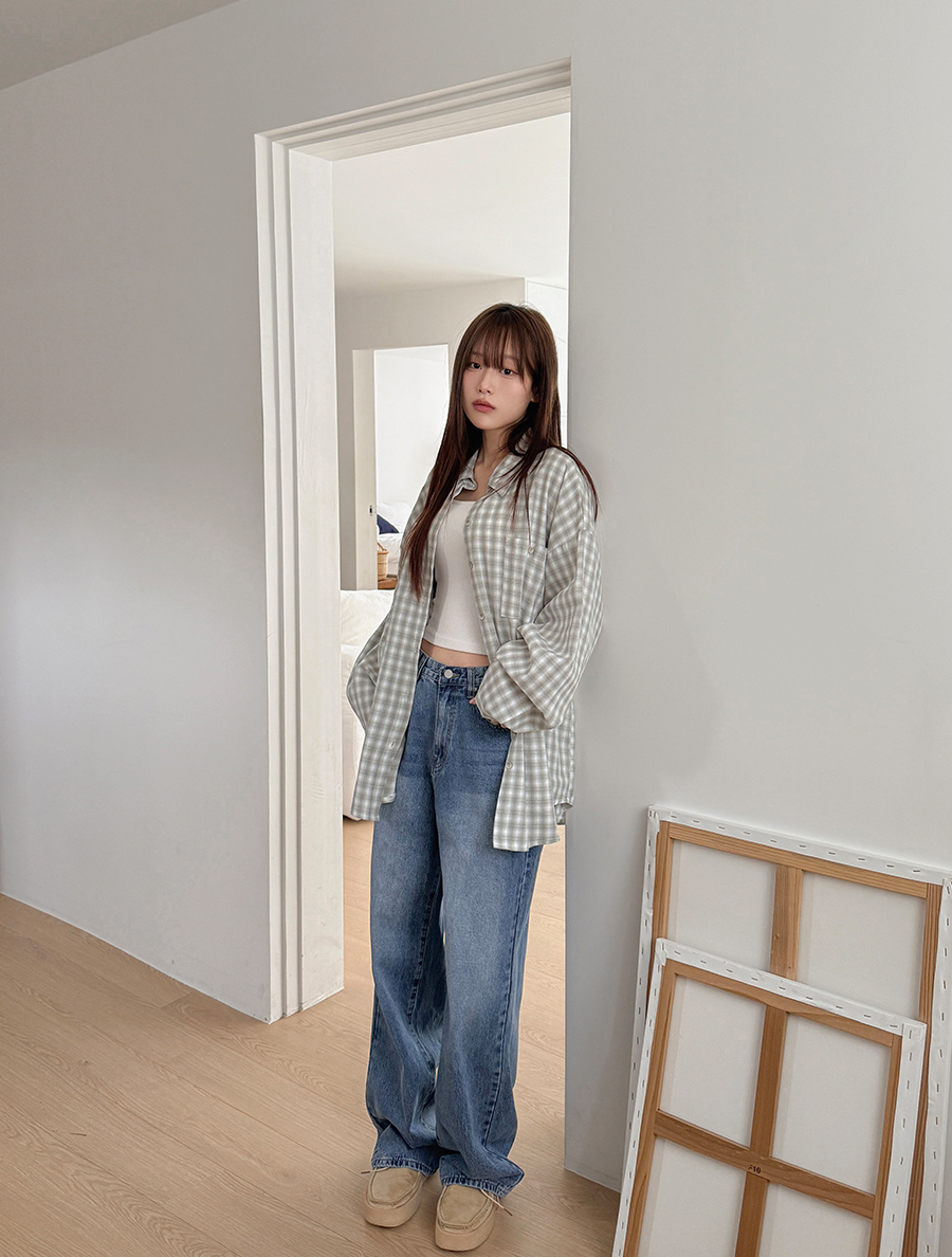 아래로 툭 떨어지는 스트레이트 핏으로