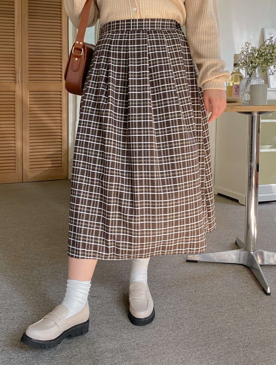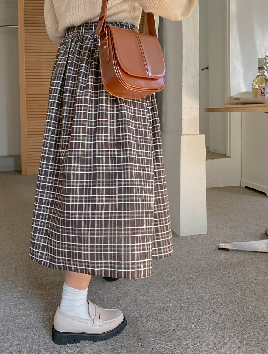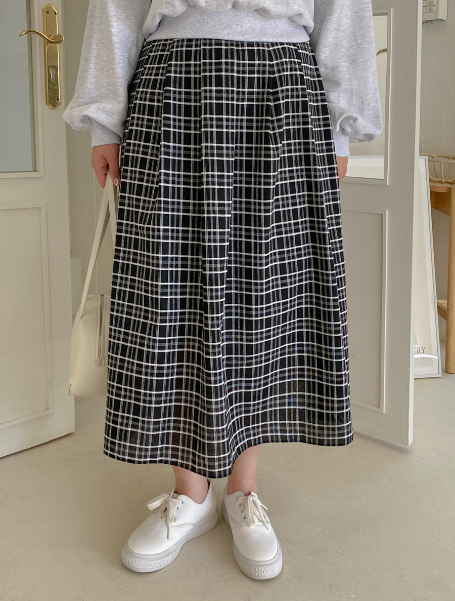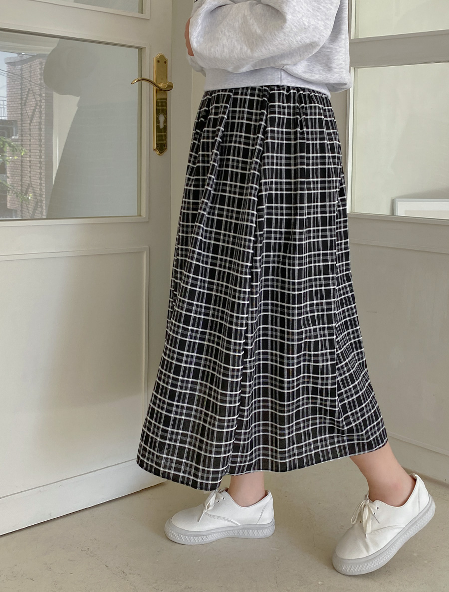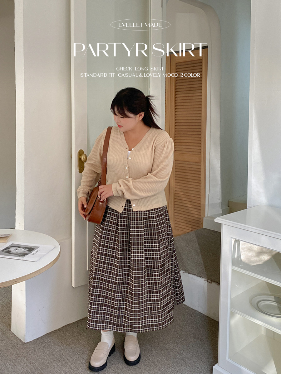 [EVELLET]파티루 체크 롱 스커트