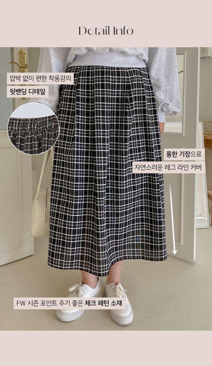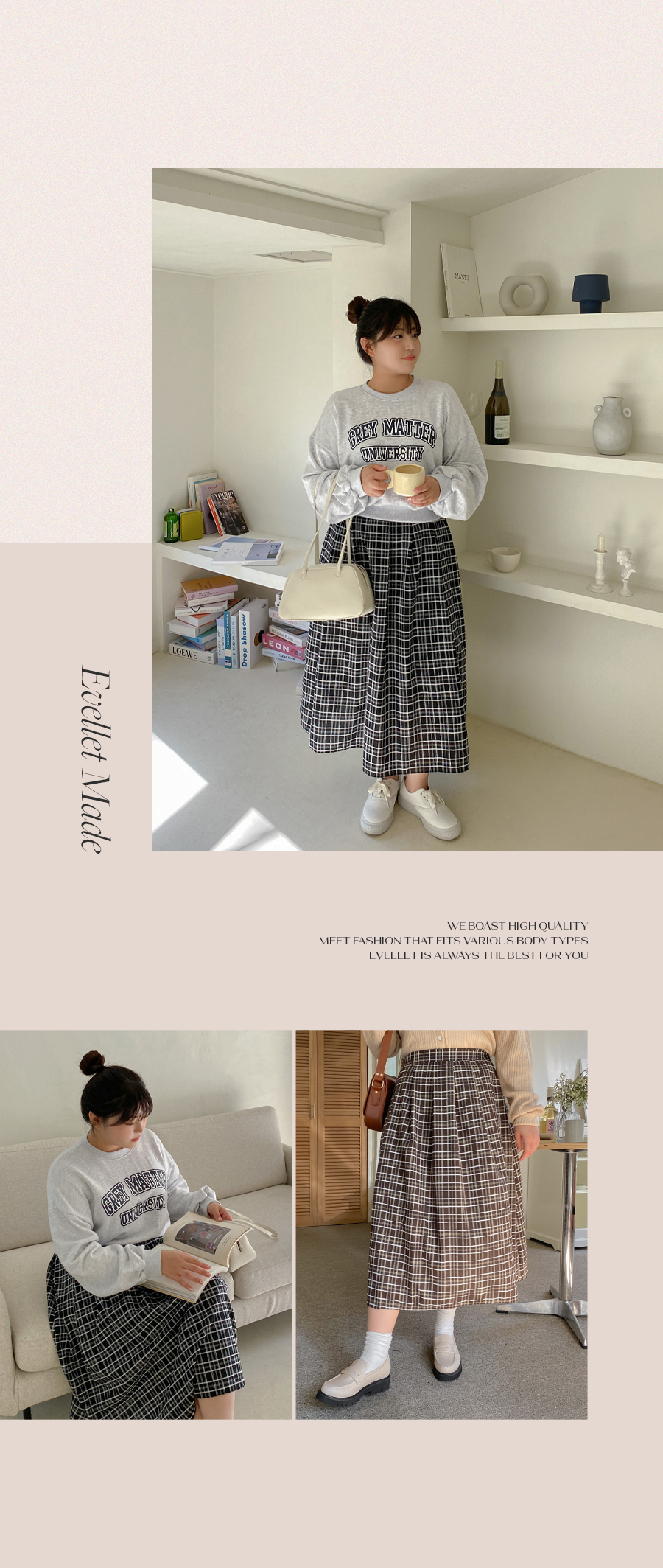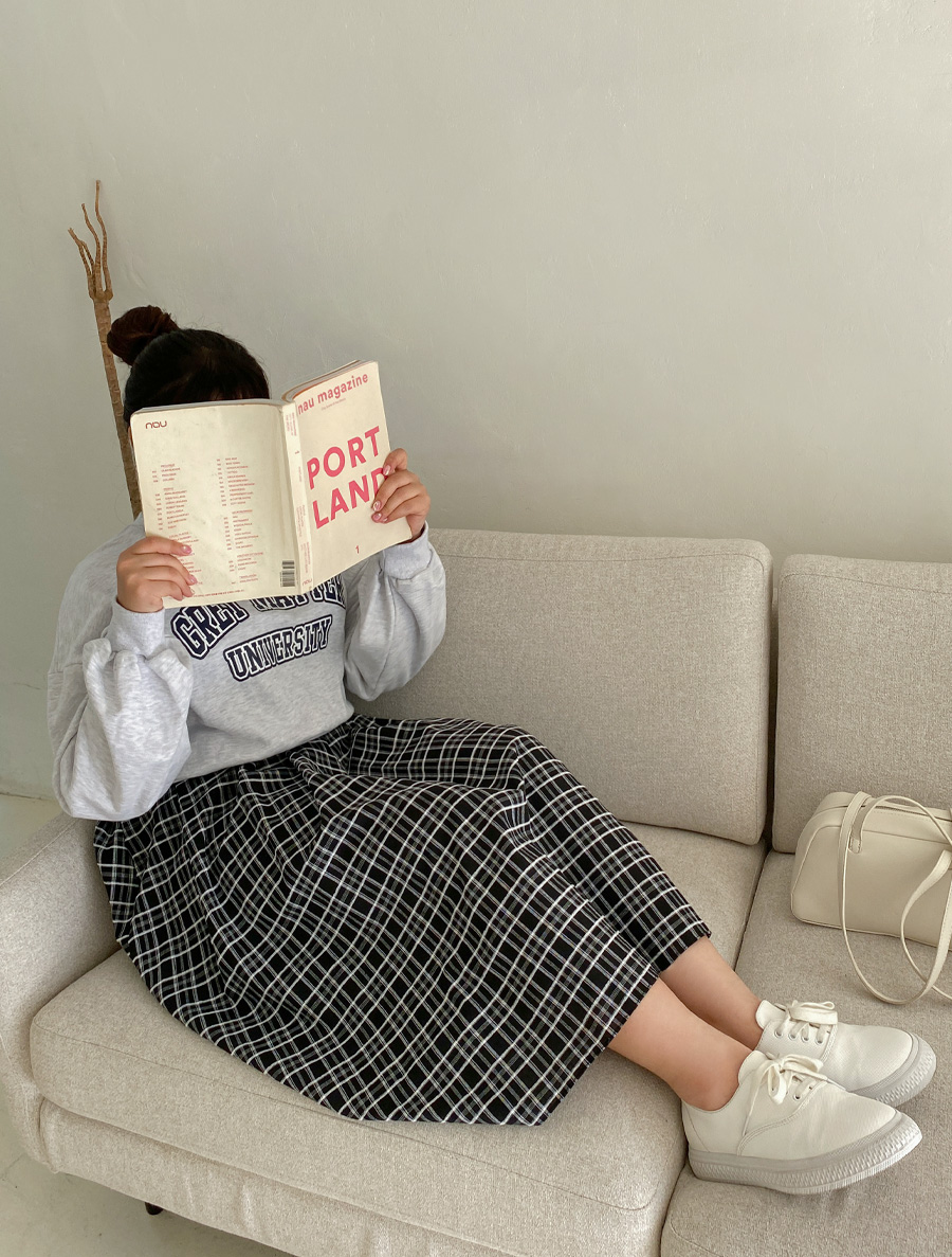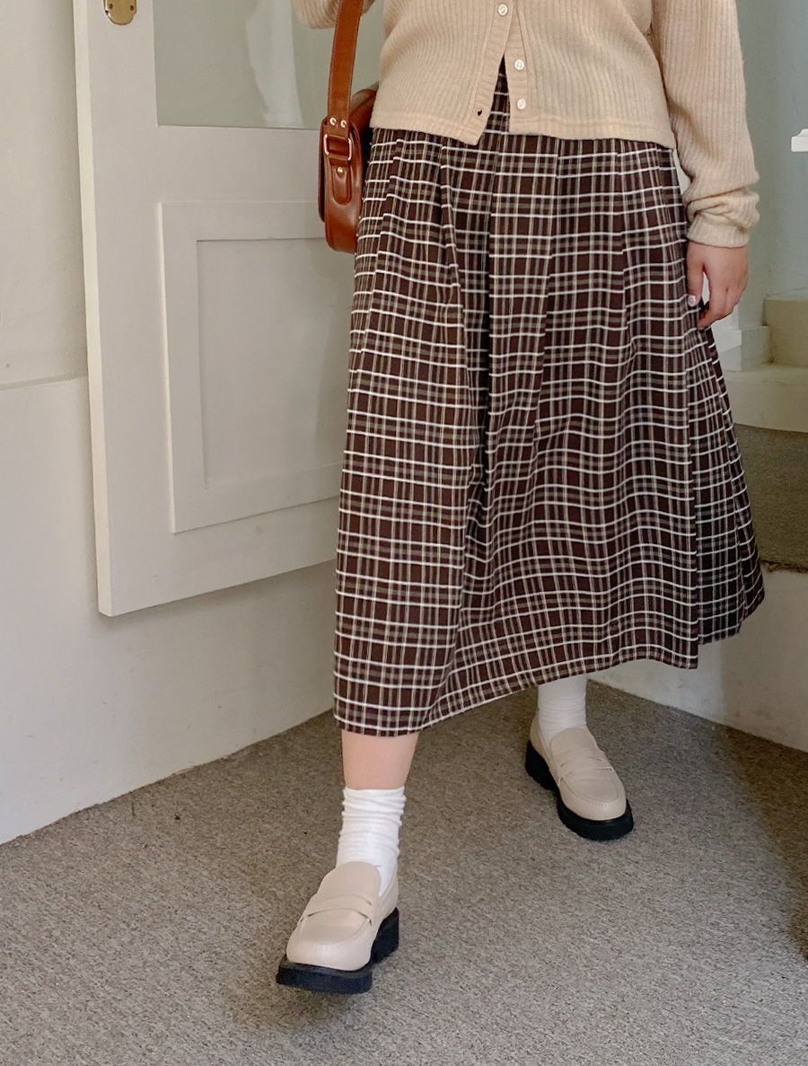 [EVELLET]파티루 체크 롱 스커트