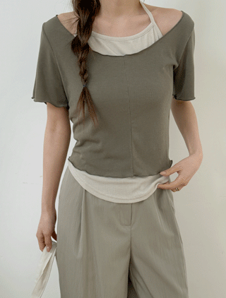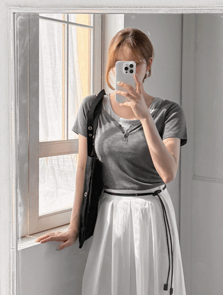 [EVELLET]미오브 패턴 스퀘어넥 티셔츠