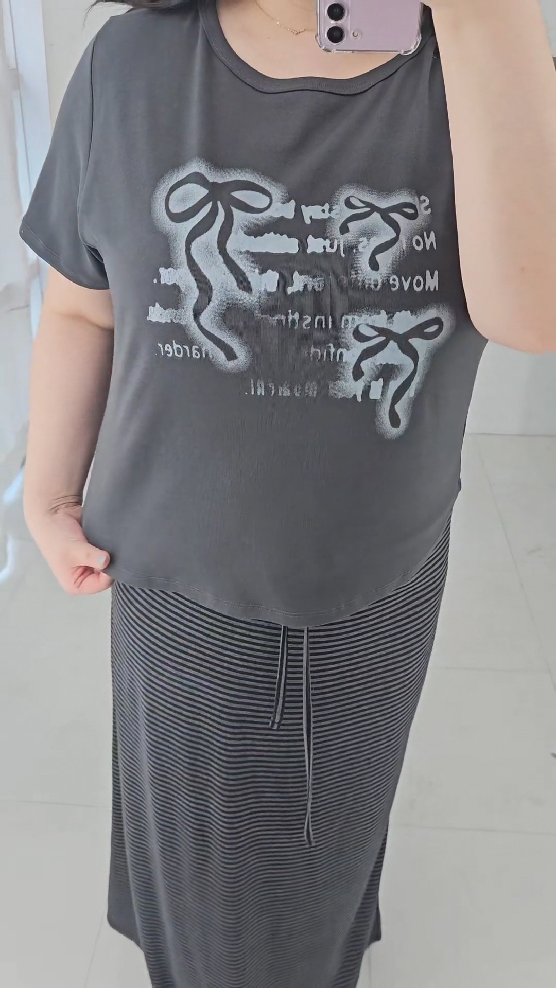 니뮤엔 프린팅 셔링 리본 티셔츠