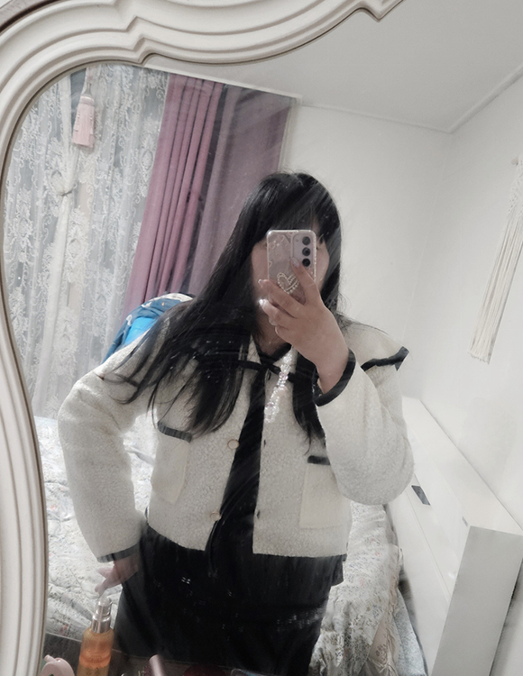 아이보리색에 블랙라인이랑 카라 부분이 포인트 되고
