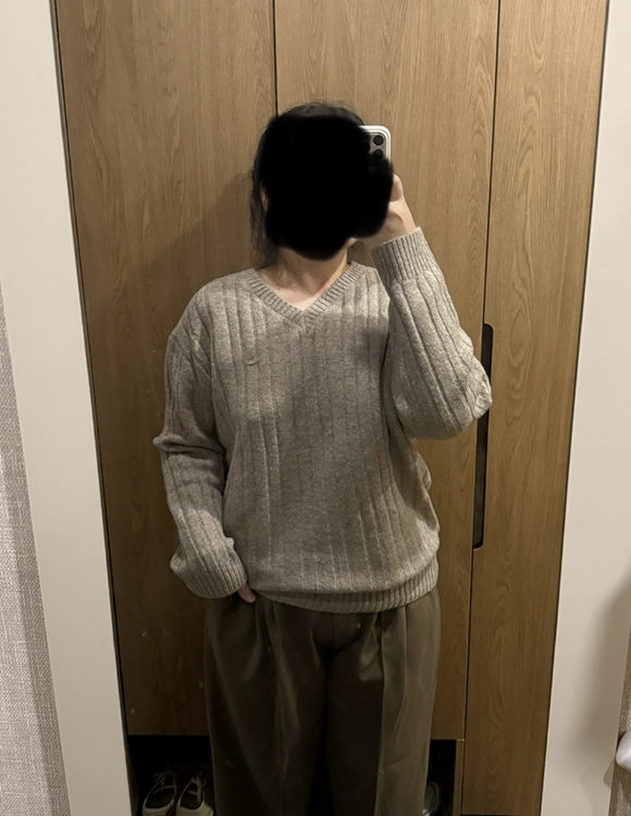 루즈핏 브이넥 골지 니트