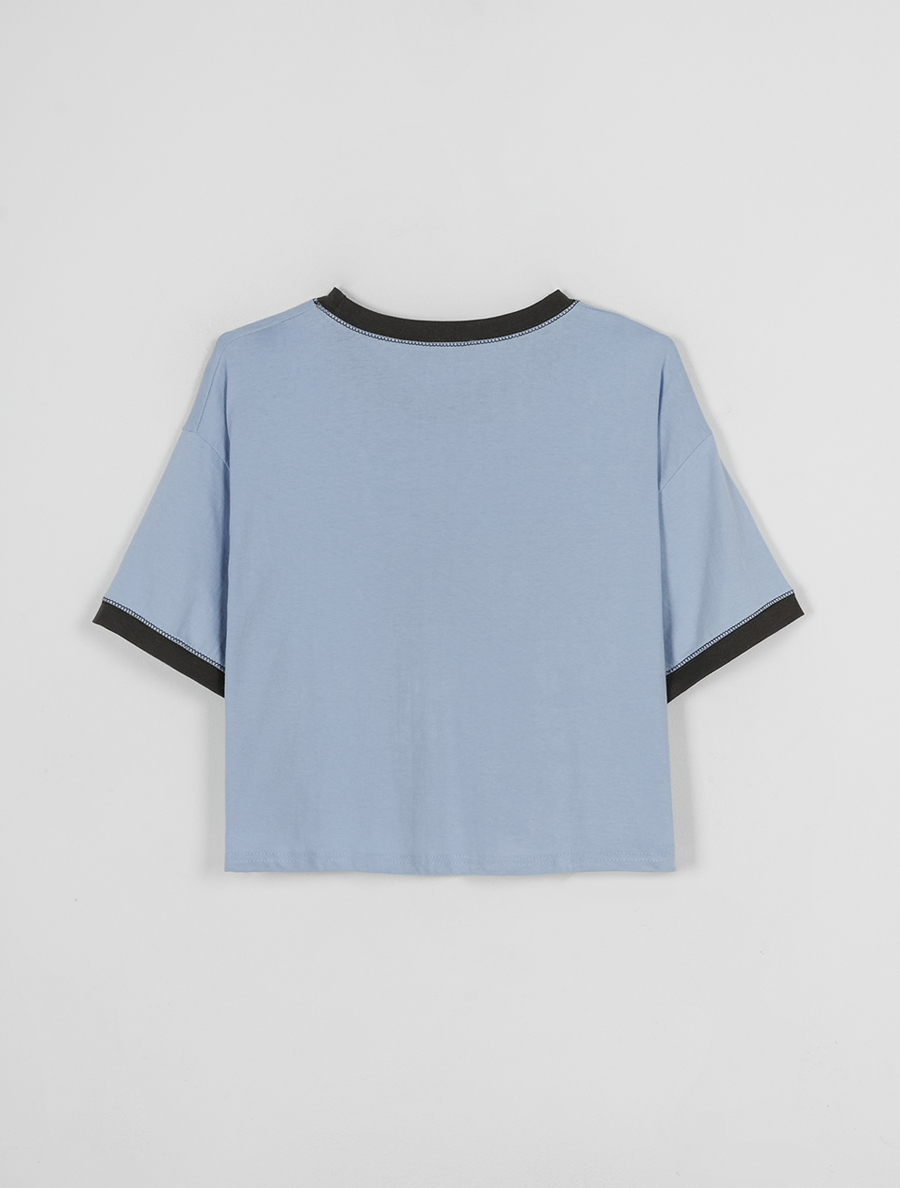 트렌디하고 멋스러운 배색 프린팅 티셔츠의