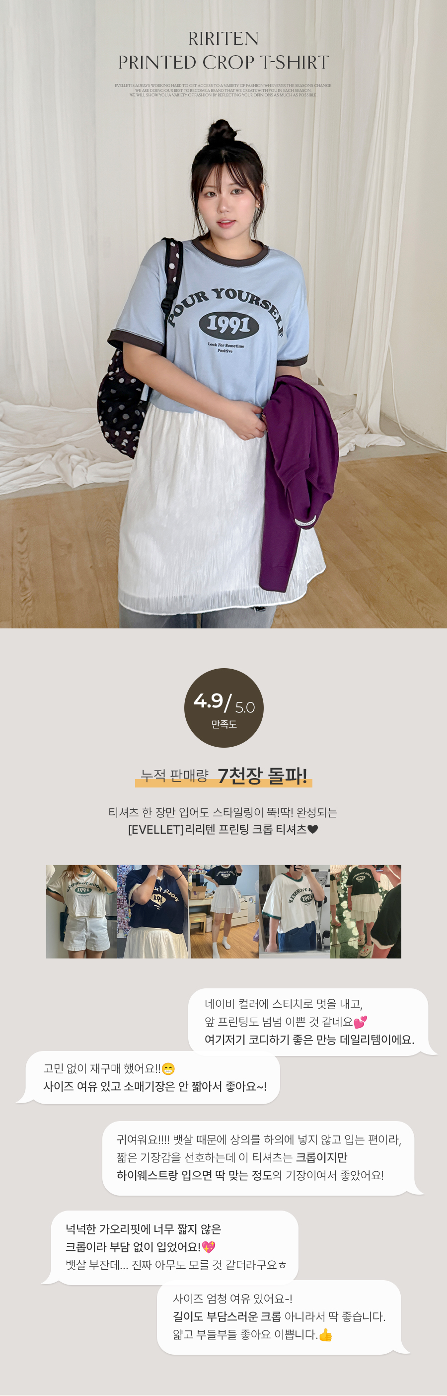 크롭 기장감이지만 부담 없이 입어지는