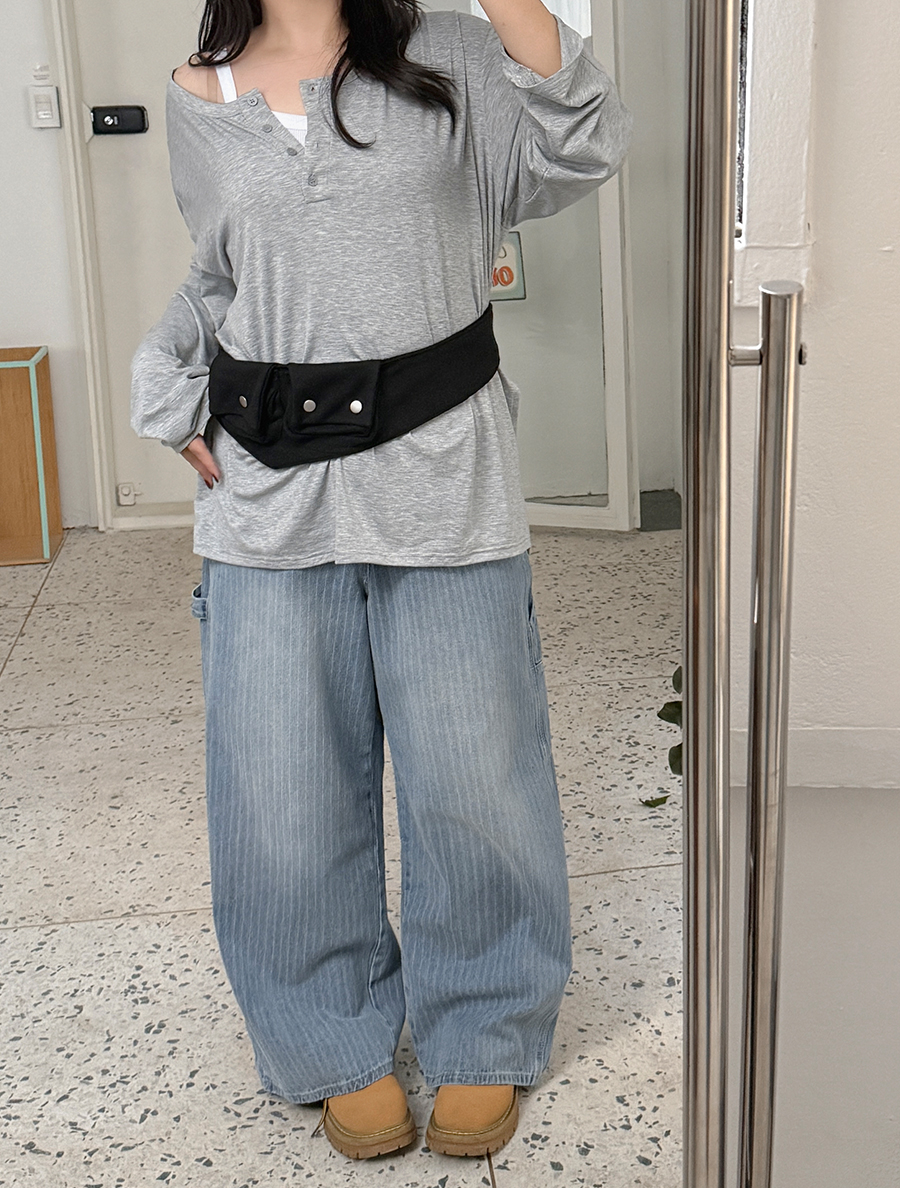 데님 팬츠에 더해 유니크하고 실용적인 포인트를 살려주었답니다!