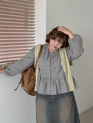 차페르 체크 프릴 블라우스