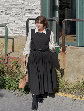 덴뮤아 셔링 서스펜더 롱 원피스