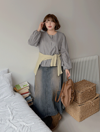 겐트아 체크 프릴 롱 스커트