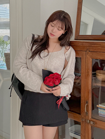 [EVELLET]루오브 기모 스퀘어넥 티셔츠
