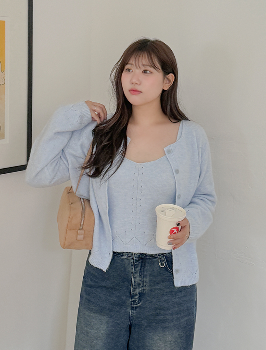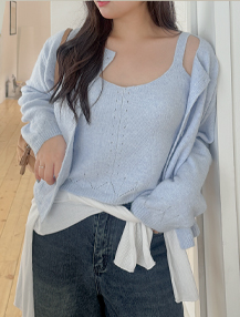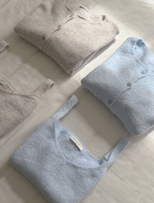 [EVELLET]셀루닌 메리노울 니트 나시 가디건 SET