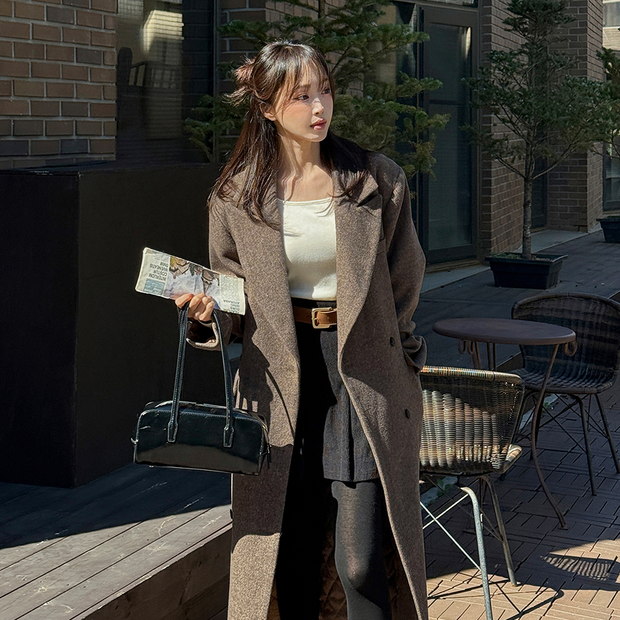 [EVELLET]로베네 울 누빔 카라 더블 롱코트