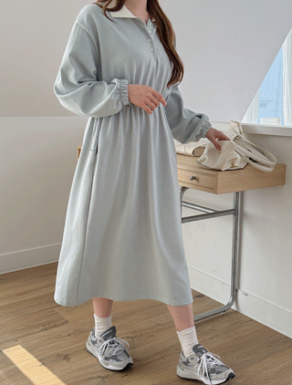 에퓨하 스트링 배색 카라 롱 원피스