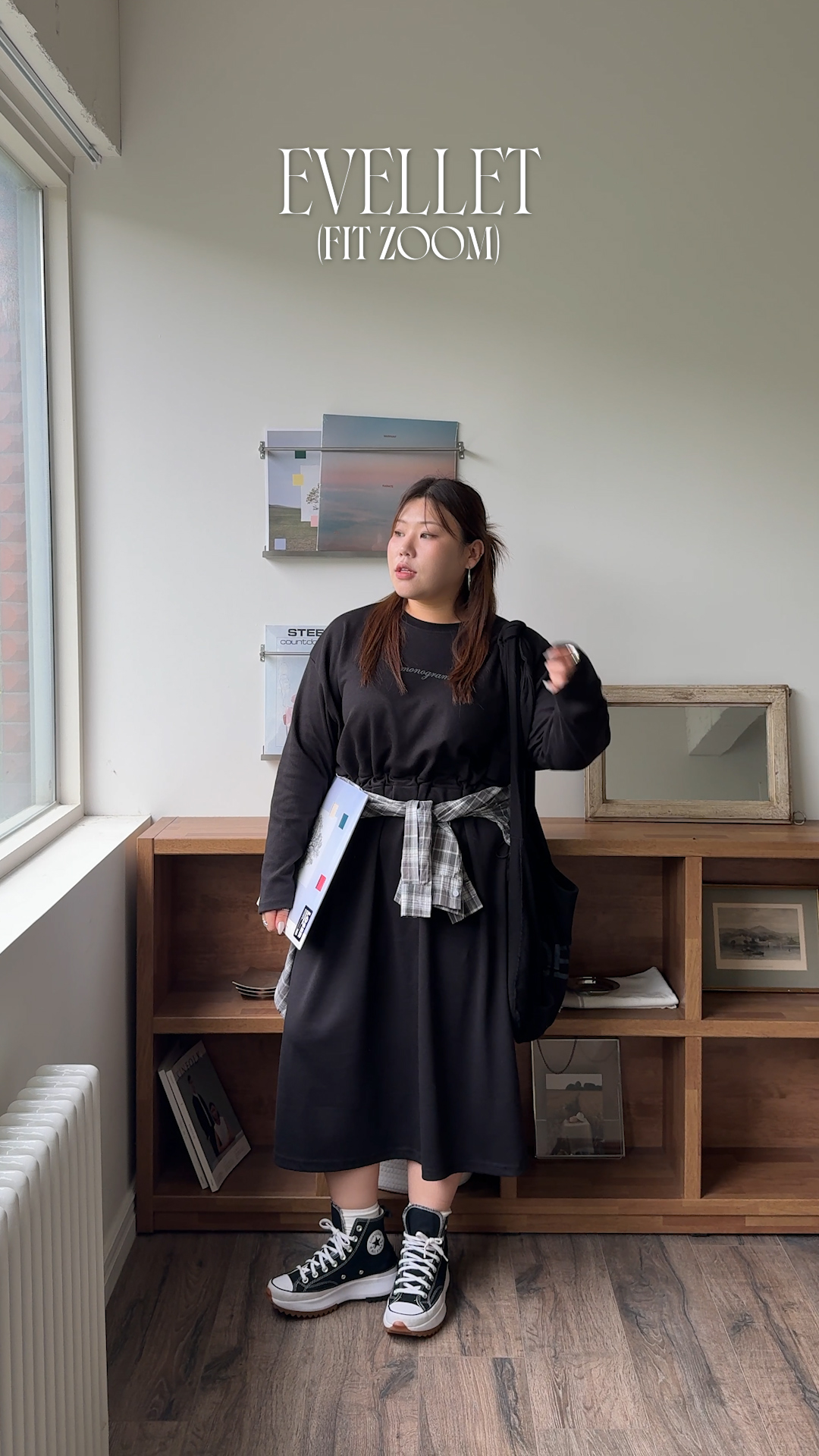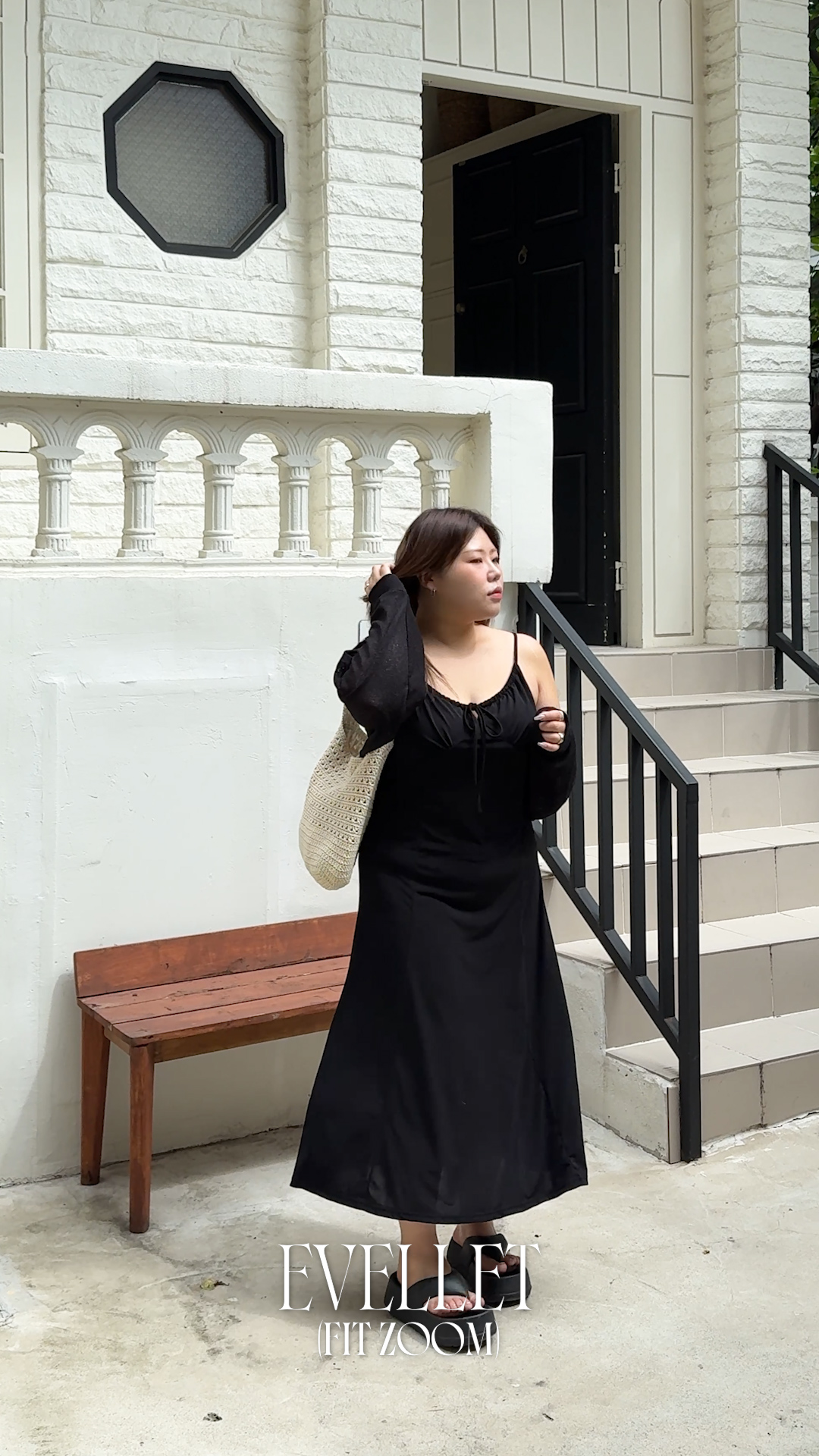 [EVELLET]모노테 레터링 스트링 롱 원피스
