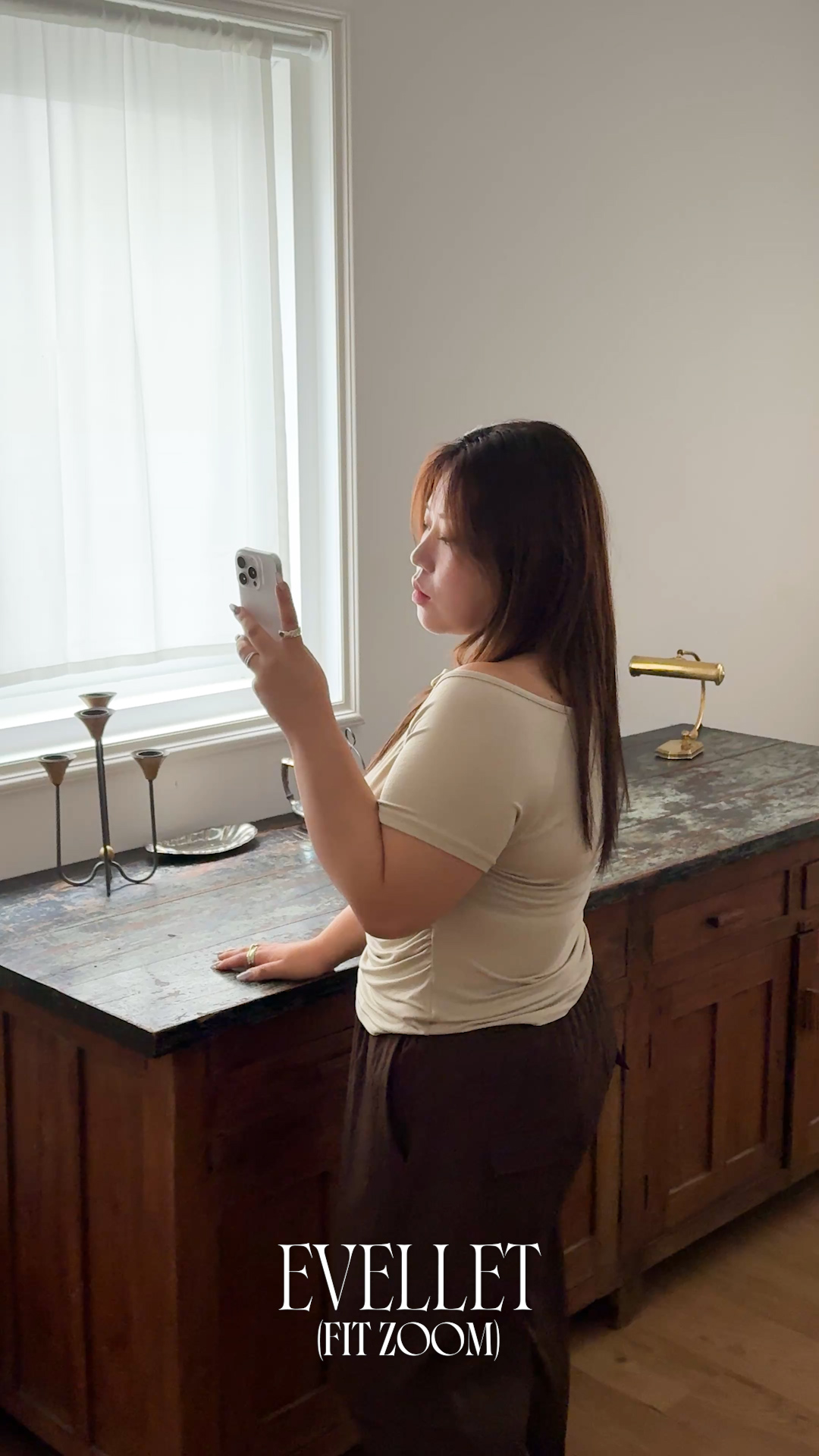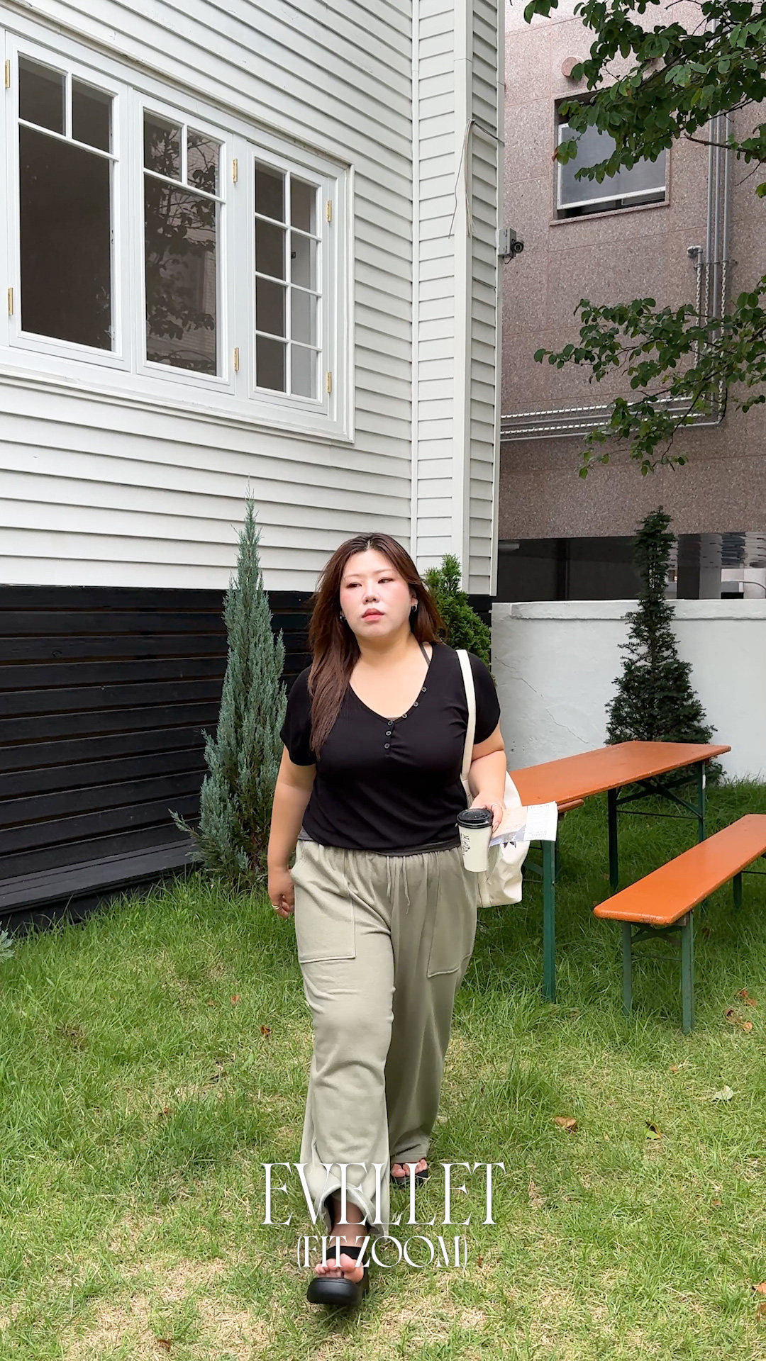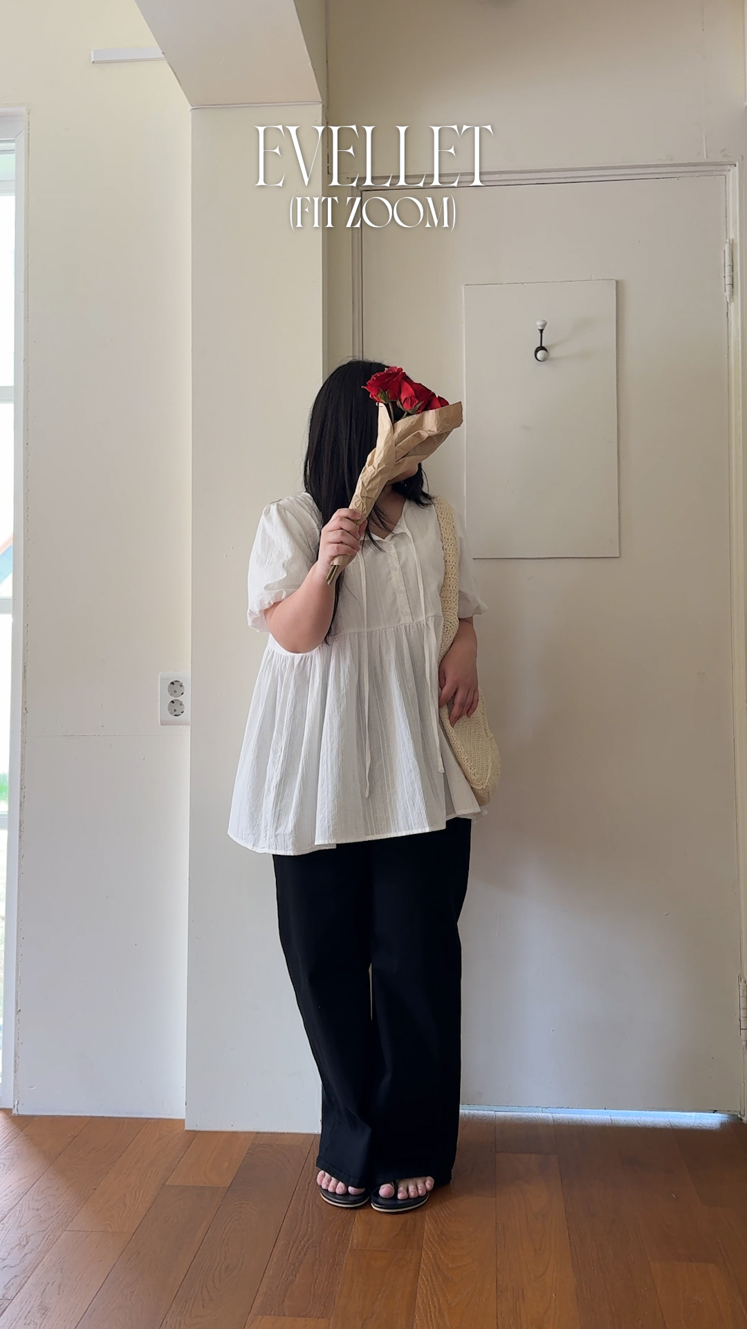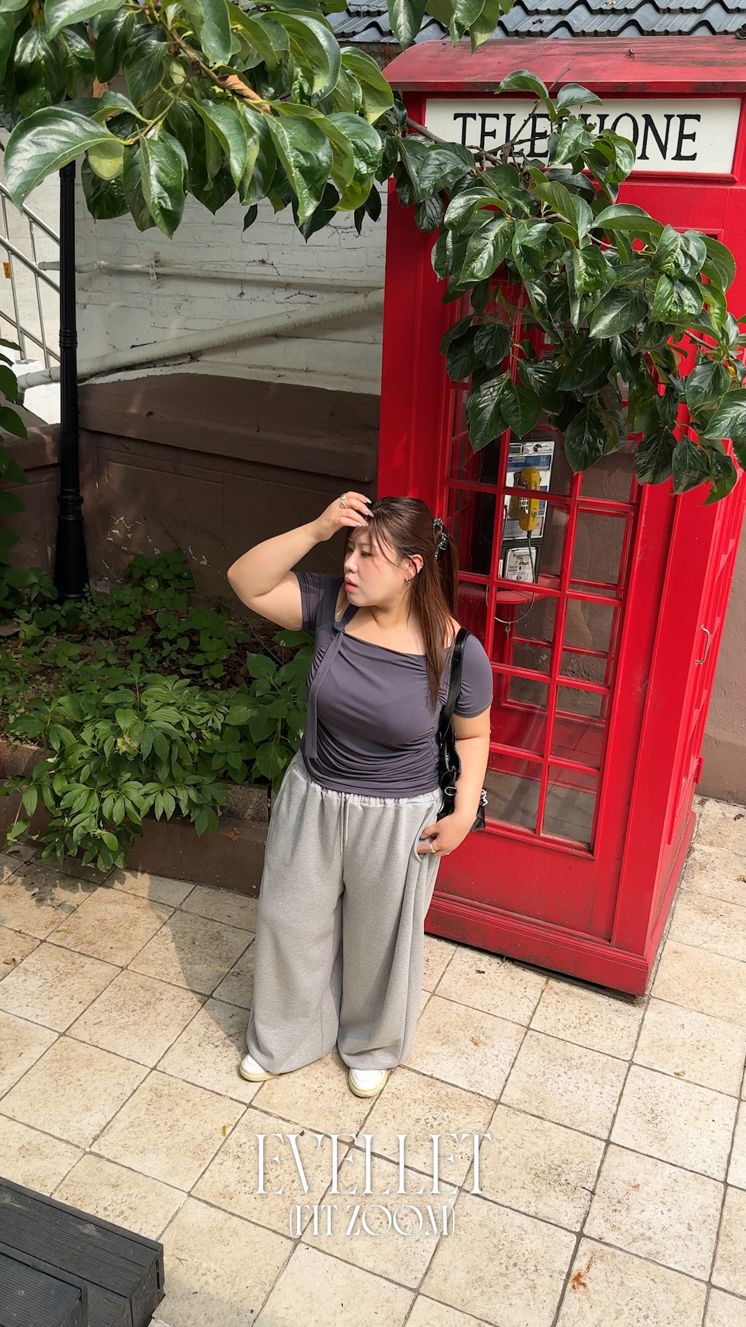 [EVELLET]라포엔 슬림핏 포켓 절개 버튼 티블라우스