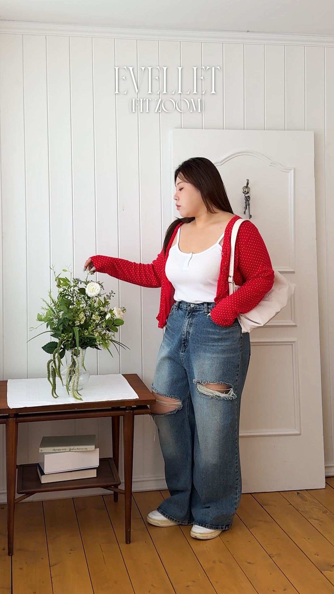 [EVELLET]로비앤 골지&플라워 버튼 끈 나시