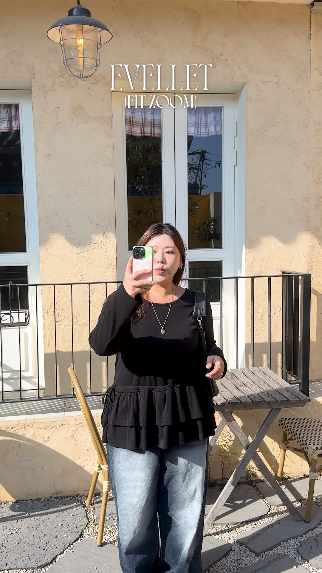 [EVELLET]드네르 셔링 프릴 레이어드 티블라우스