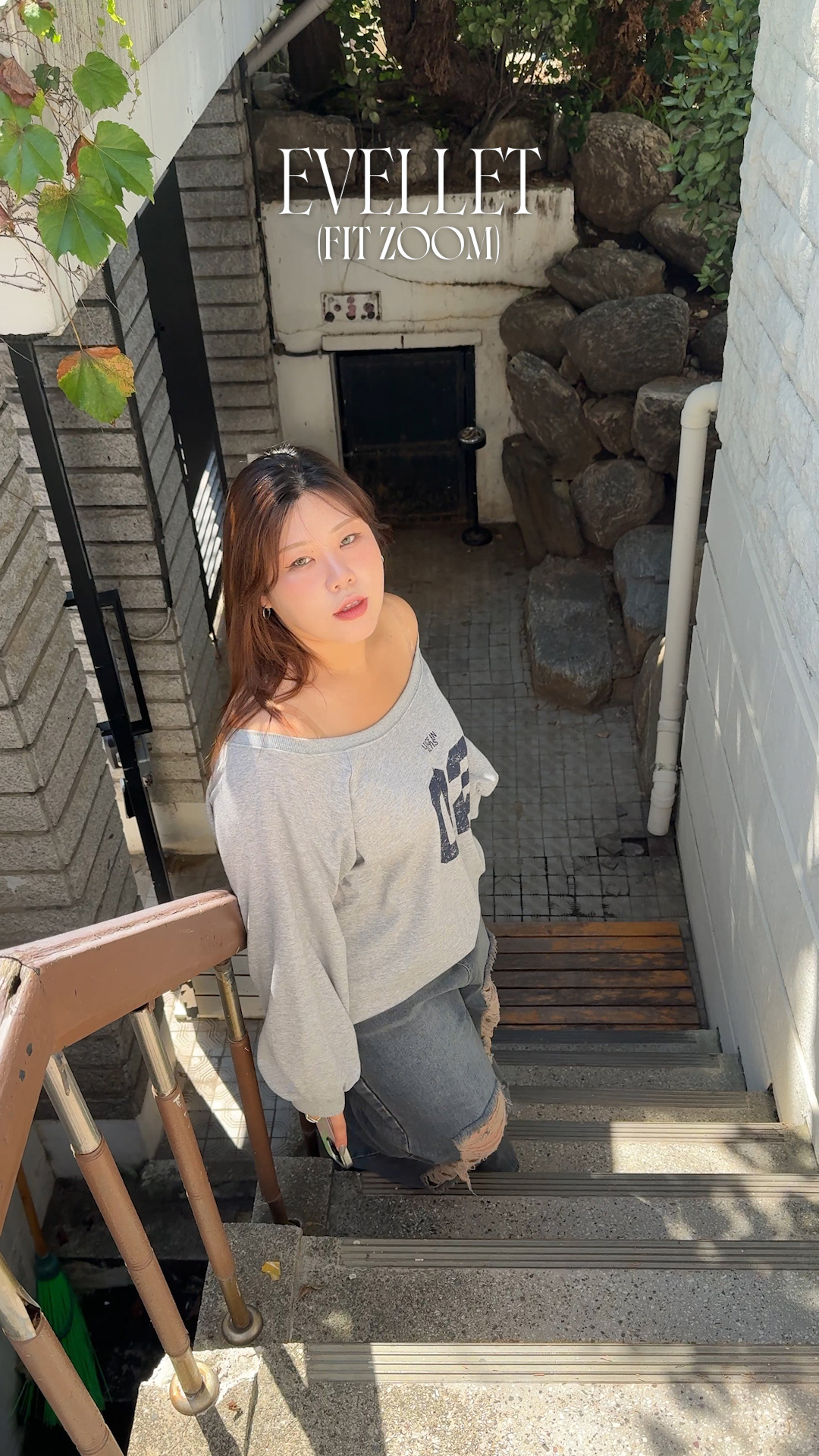 [EVELLET]드피아 오프숄더 루즈핏 레터링 맨투맨