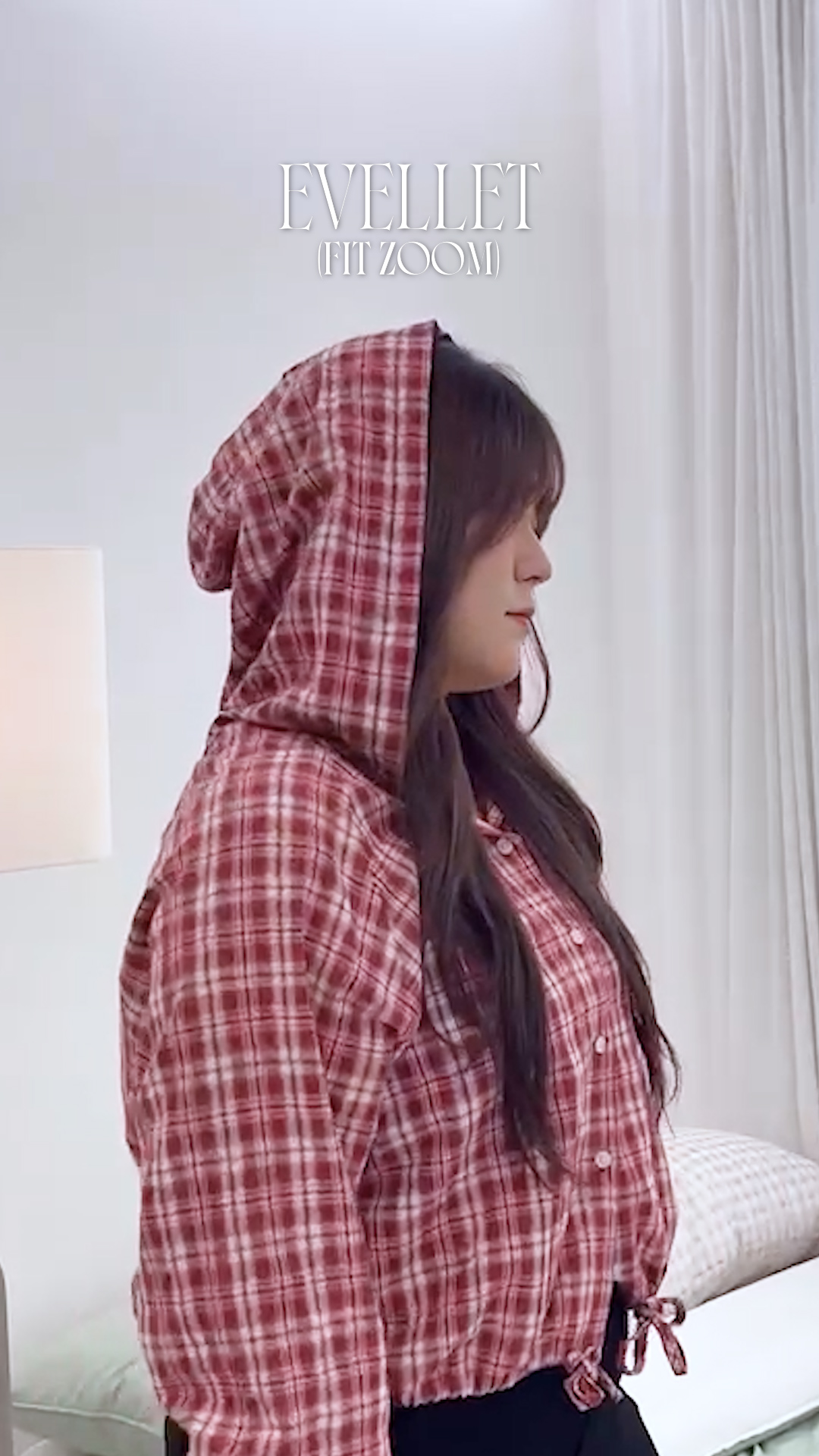 [EVELLET]모비엔 코튼 스트링 후드 체크셔츠