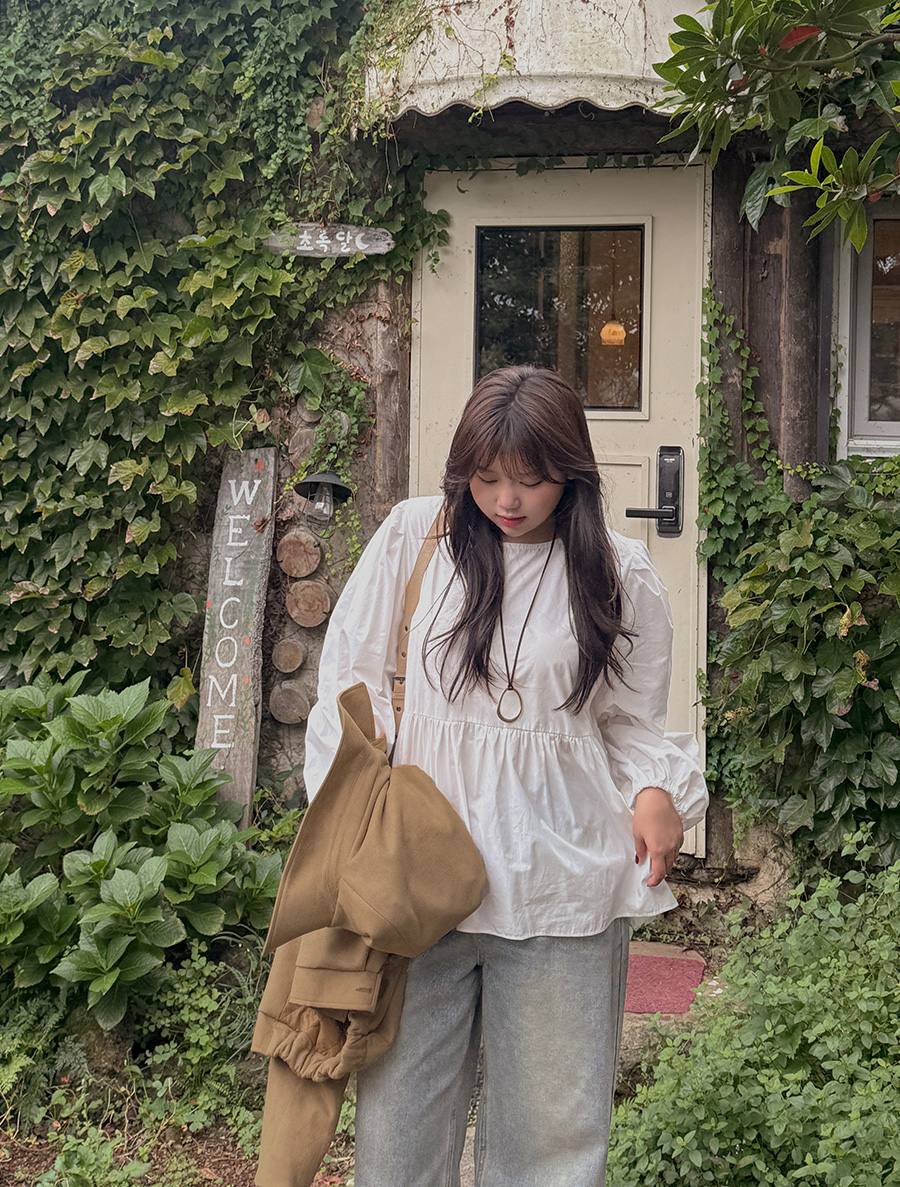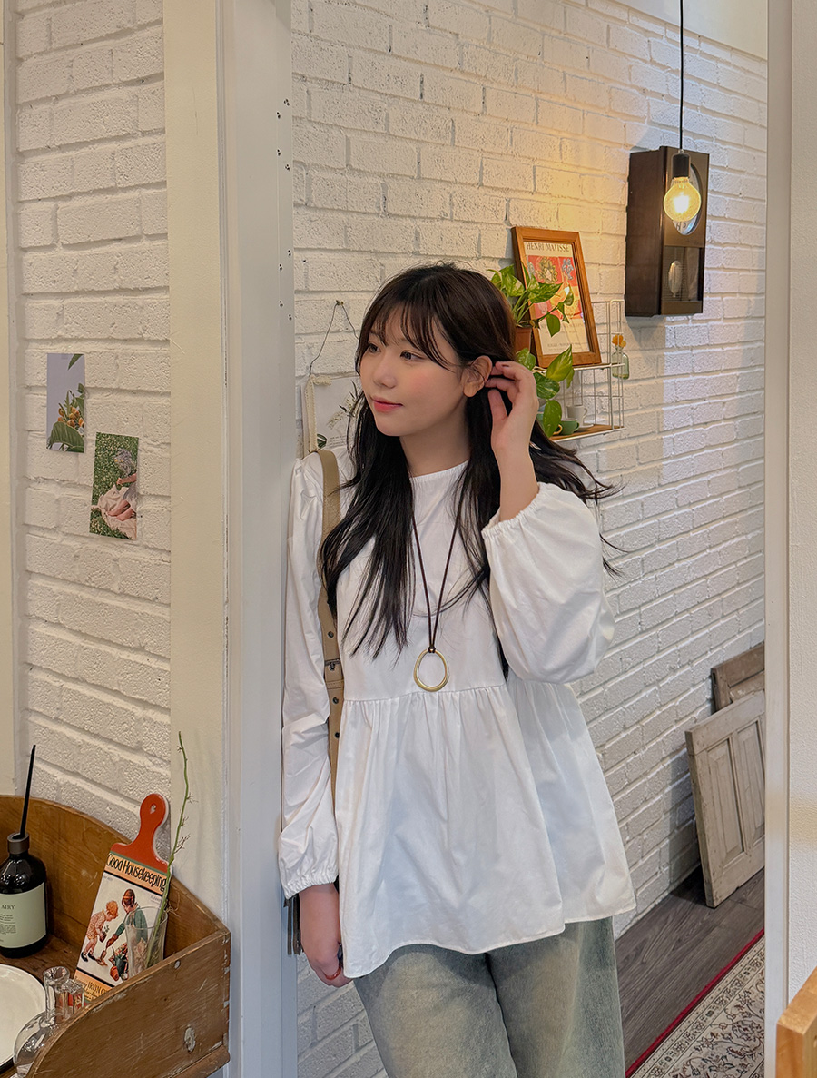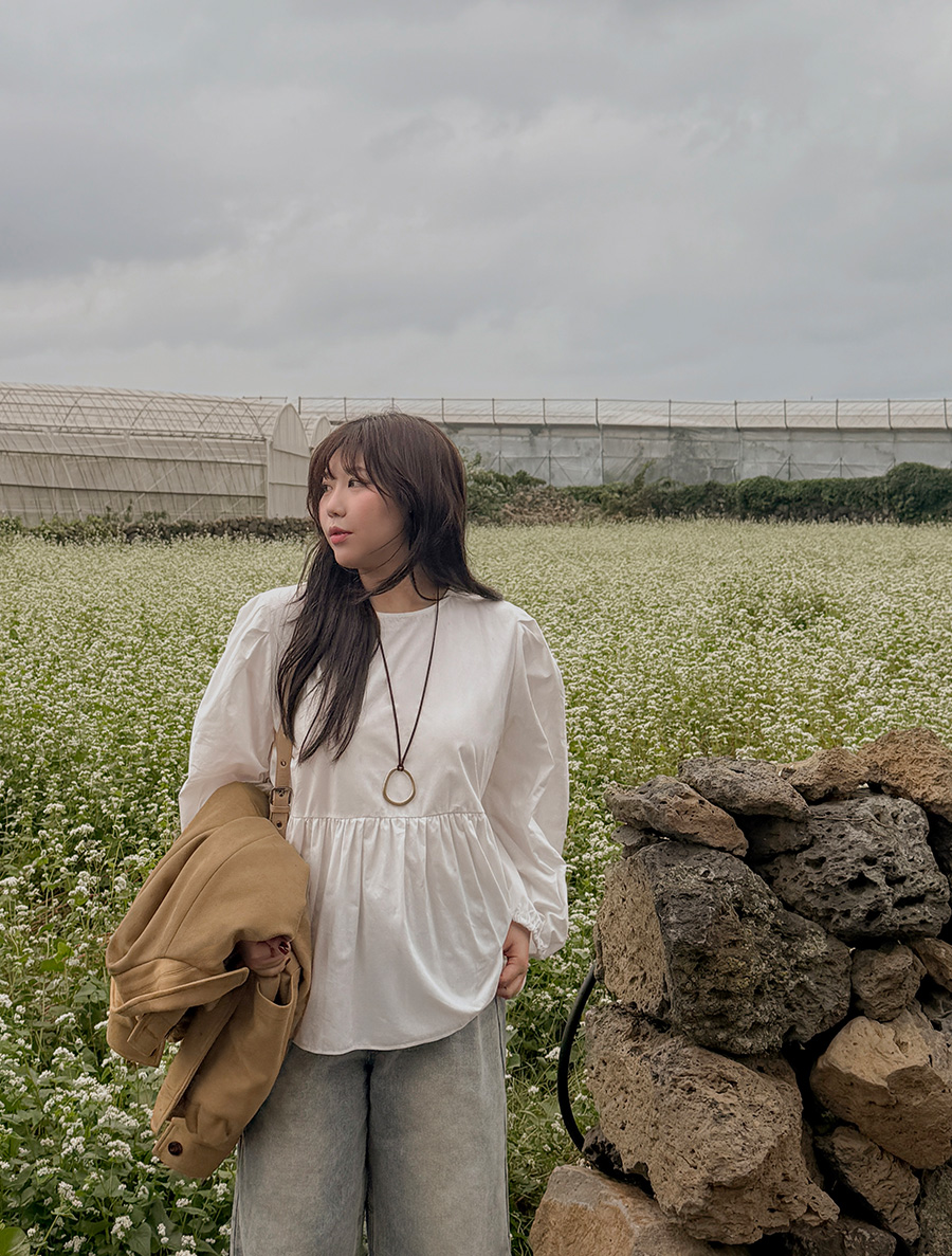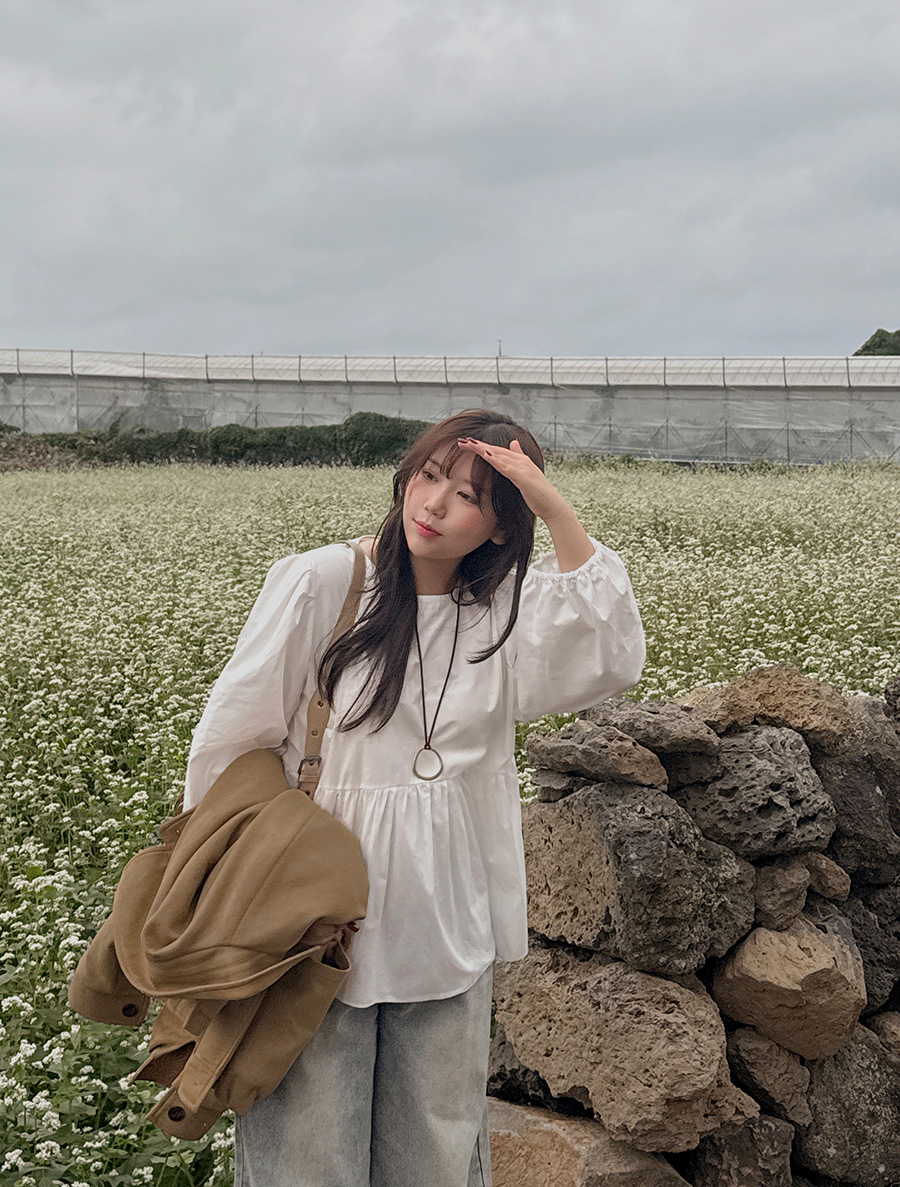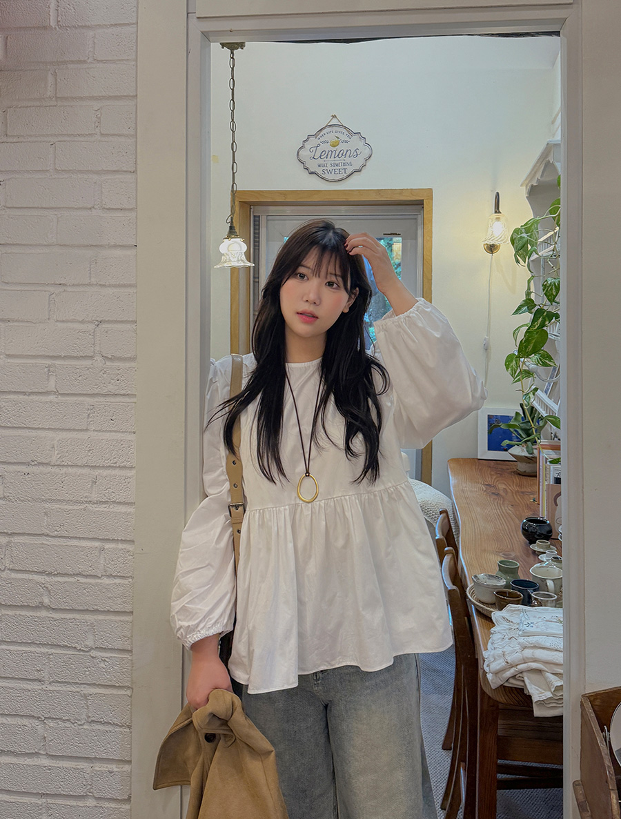 네이픈 퍼프 셔링 코튼 블라우스
