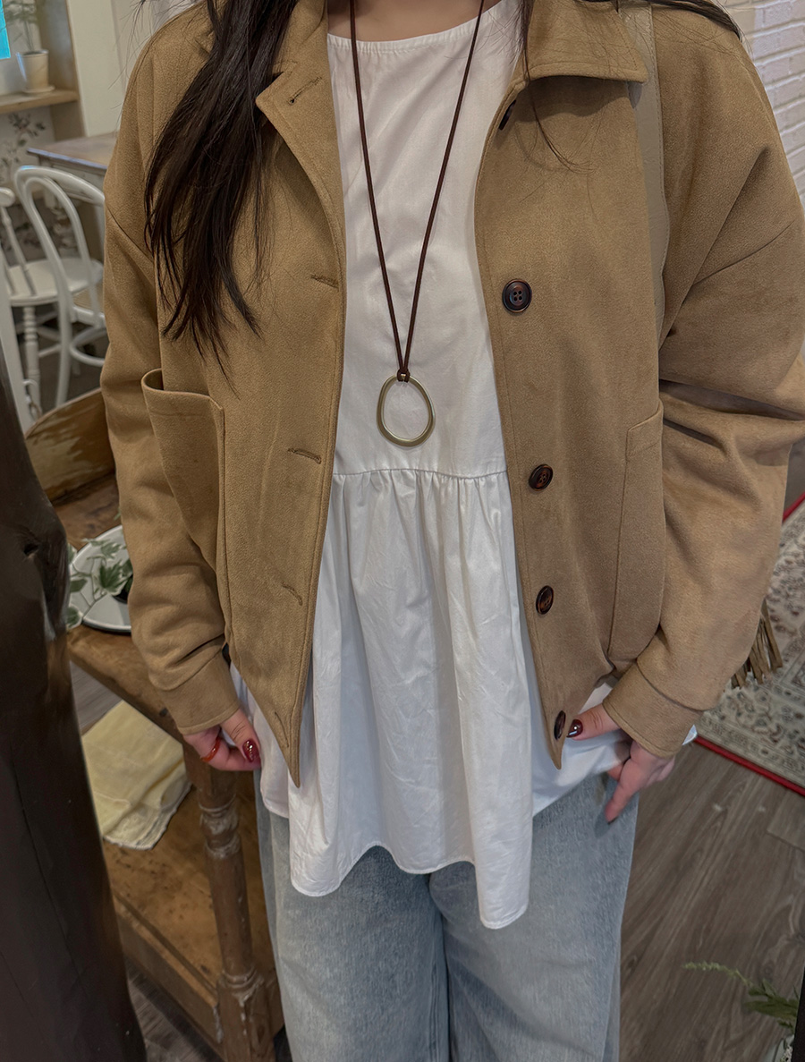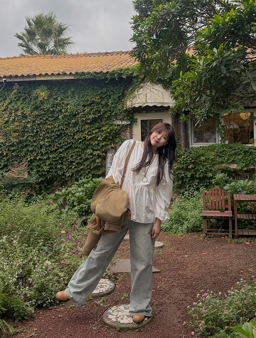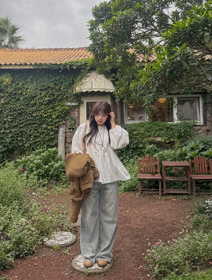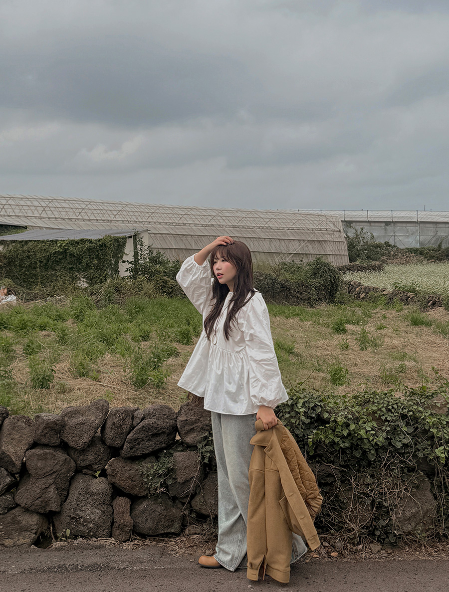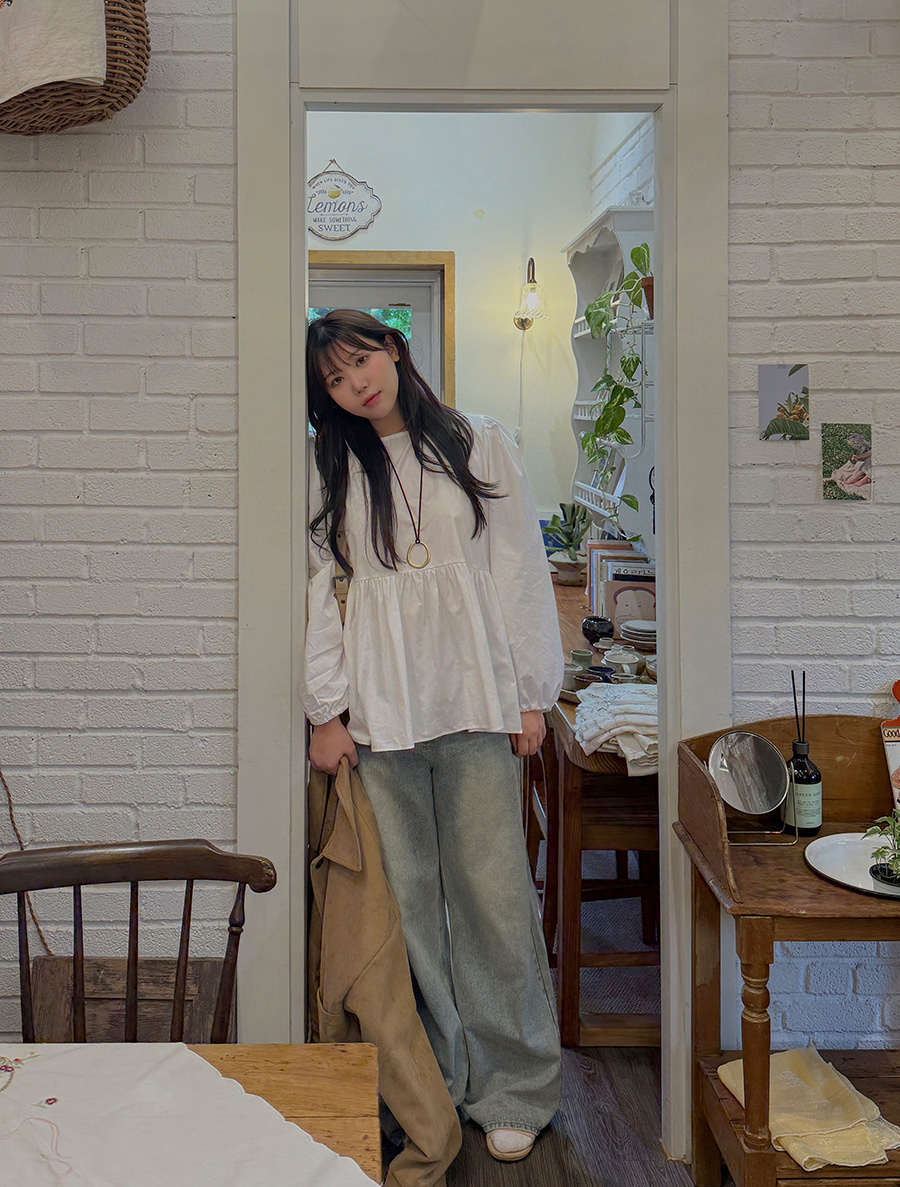 네이픈 퍼프 셔링 코튼 블라우스