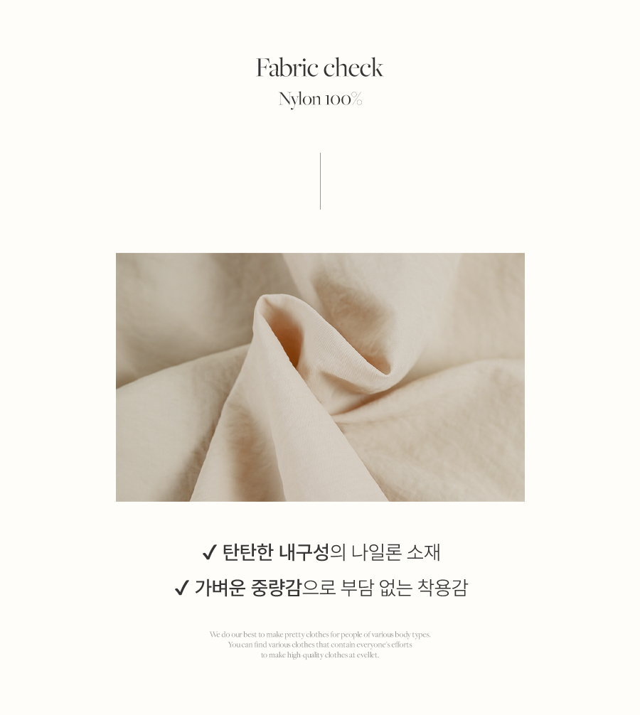 소재마다 가공 과정상의 특성상 특유의 냄새가 날 수 있습니다.