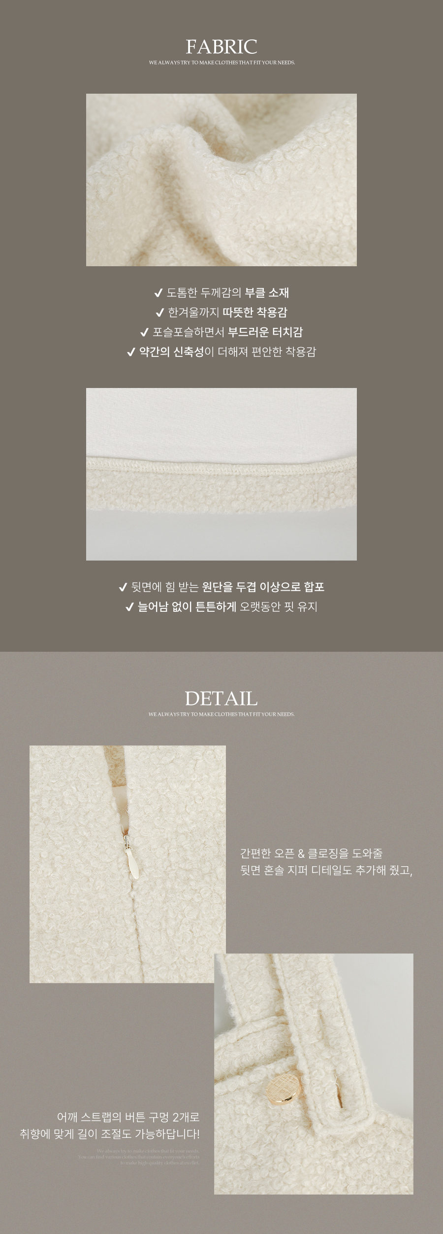 대량 생산 특성상 마감 처리가 미흡할 수 있습니다. (잘라내도 무방한 실밥, 초크 자국,제단 면의 원단 조각 등)