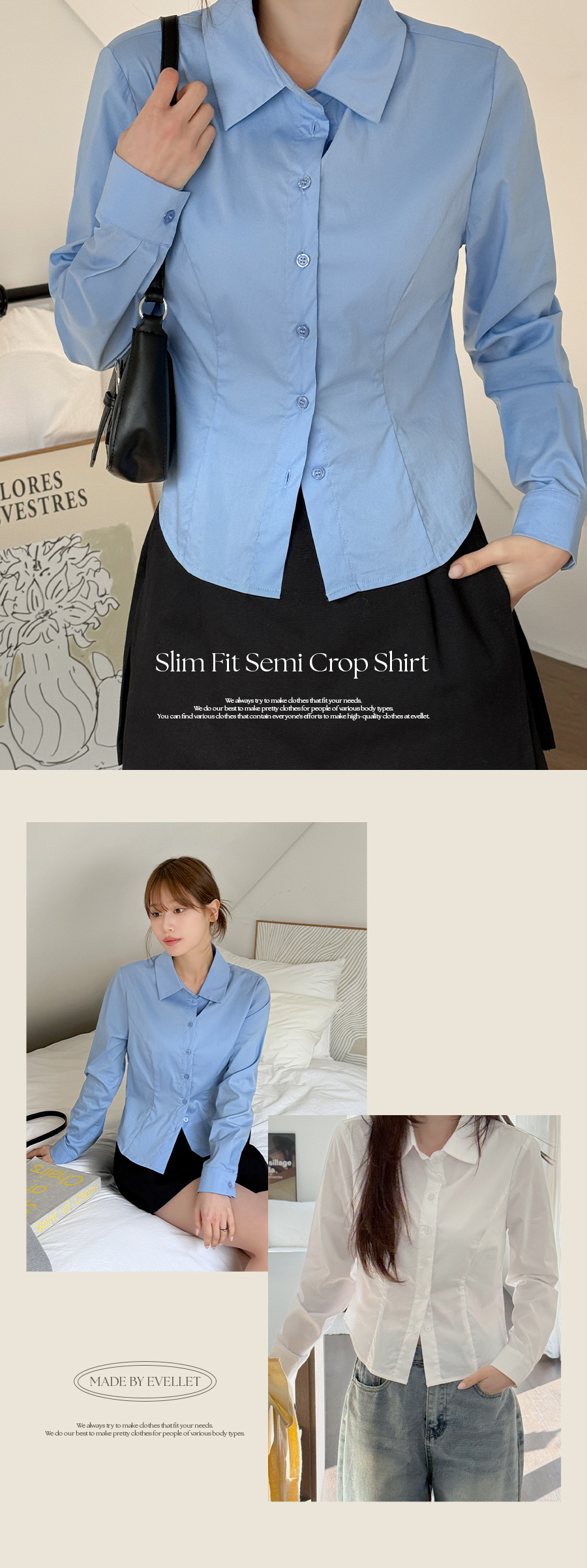 [EVELLET]루체프 스판 슬림핏 세미크롭 셔츠