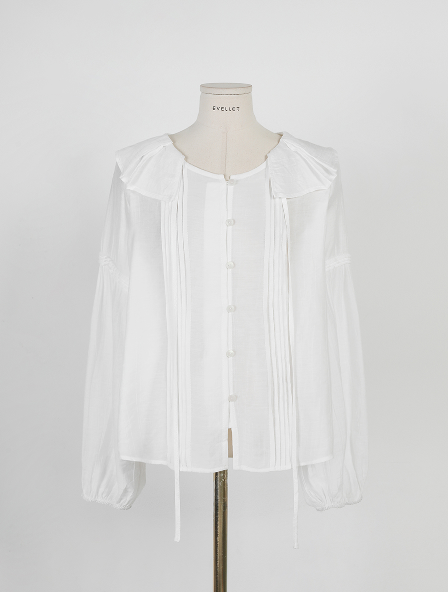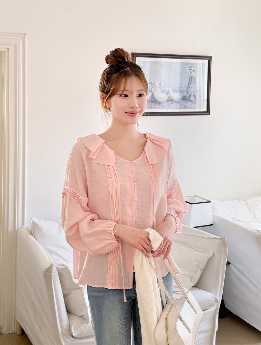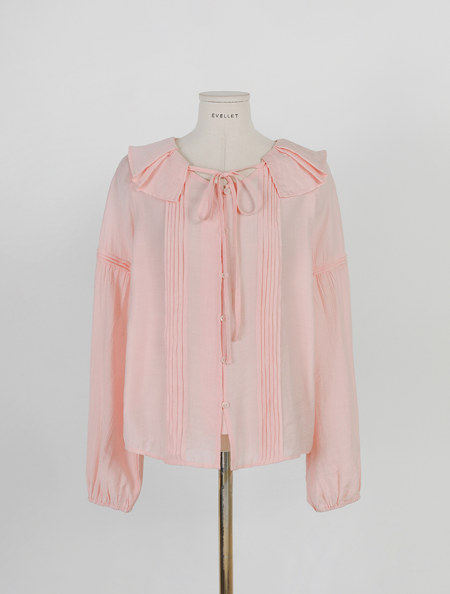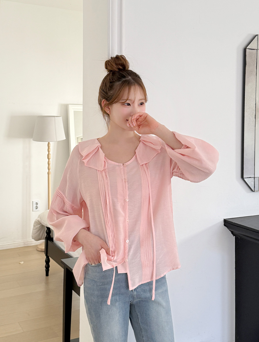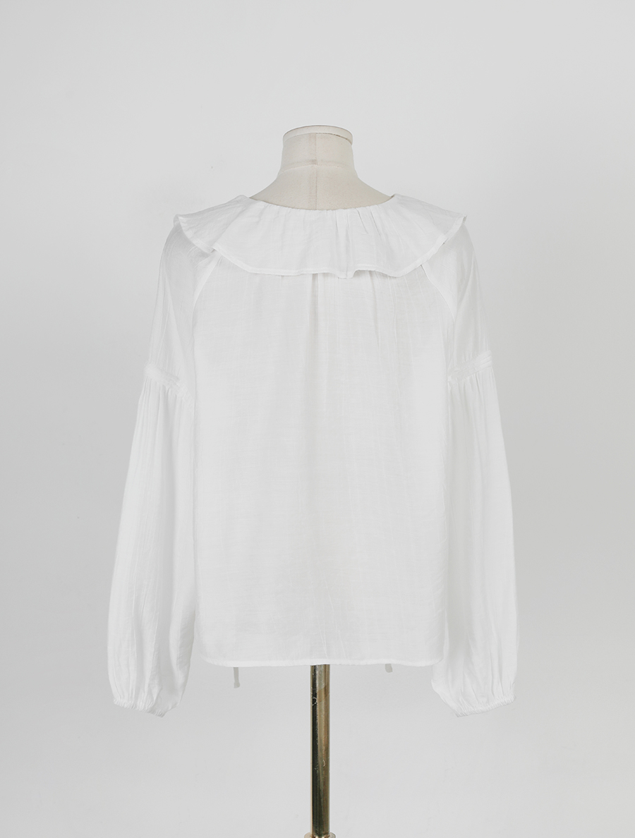 넥 프릴 디자인에 리본 스트랩 디테일을 넣어