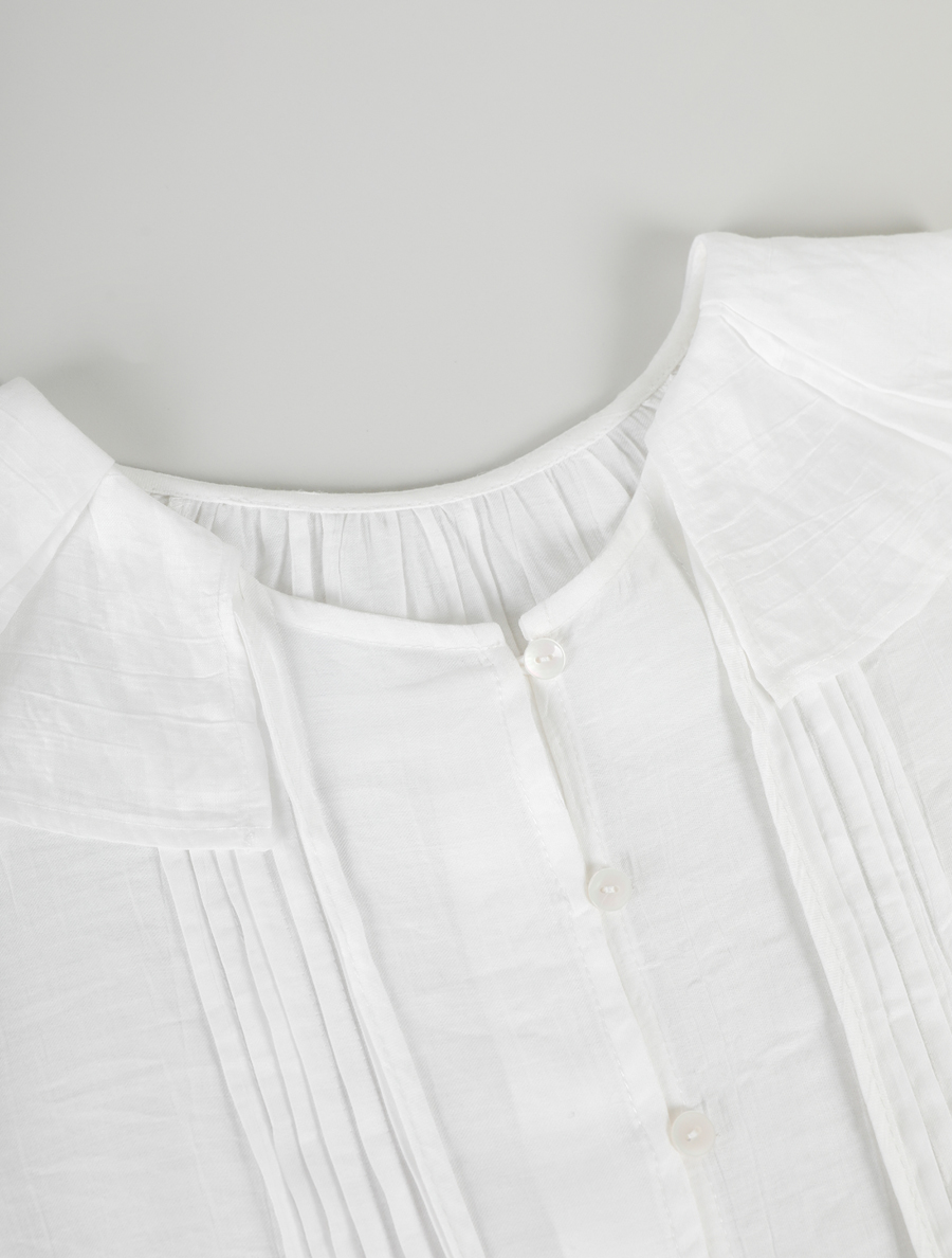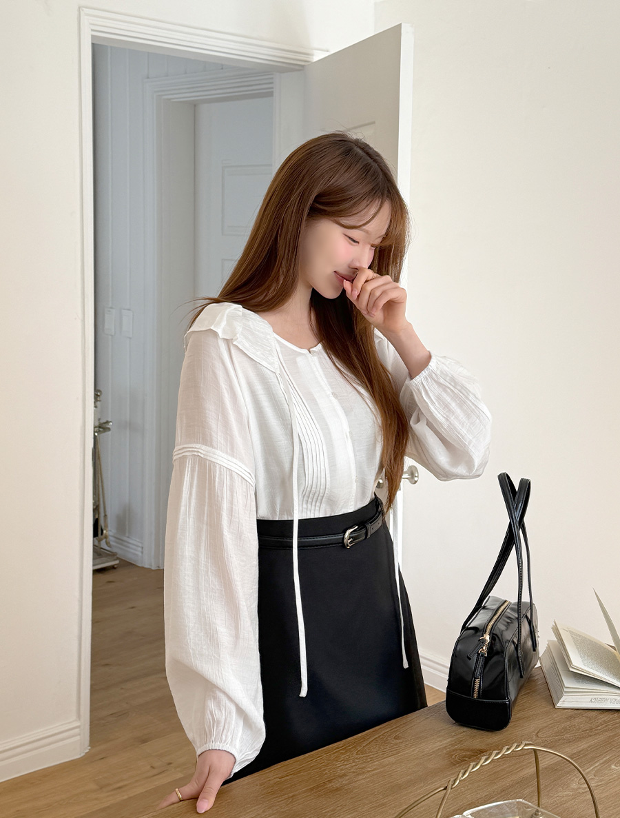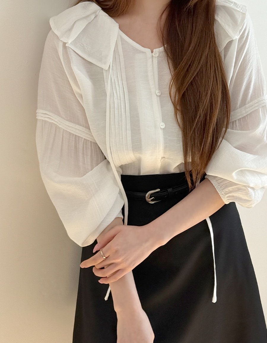 소매 핀턱 아래로 자연스럽게 이어지는
